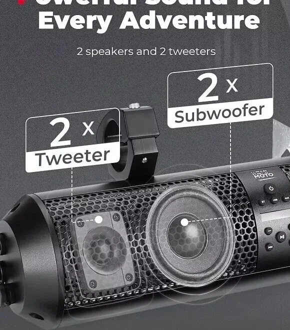Condition New Sync Your Lights to Music The RGB multi-color lights on the ₭EMIMOTO Golf Cart sound bar flash in sync with the beat of the music. You can choose from various multi-color illumination options using the wireless remote control or the onboard button control. Waterproof & Dustproof The ₭EMIMOTO SXS Sound Bar meets the IP65 Rating International Standard, ensuring complete protection against dust, oil, and other non-corrosive materials. It also provides a good level of protection against water. Powerful Loud and Clear Sound Equipped with two 4'' full-range speakers and two 1'' soft dome tweeters, the ₭EMIMOTO sound bar is powered by a high-performance 400W to provide you a loud music even during riding. Various Connectivity Options The Kemimoto utv soundbars with lights offer multiple ways to connect to your Smartphone or MP3 Player effortlessly. You can establish a wireless connection through its built-in Bluetooth feature, utilize the 3.5mm aux input, or utilize the USB charging port for playback. RGB SXS speakers are compatible with both iOS and Android systems, ensuring seamless connectivity. Additionally, if you prefer to enjoy crystal-clear and amplified music while riding, you can connect your headphones to the soundbar's 3.5mm aux input. Round Design with Tough Construction ₭EMIMOTO always spares no effort in developing UTV parts including the utv sound bar with a round shape and aluminum alloy, which makes you outstanding from the crowd, more importantly, it won't hurt you much if you hit the soundbar occasionally compared with square one. What You Get With the package of 18 Inch kemimoto Bluetooth RGB speakers, you'll receive everything you need for a hassle-free installation. Package includes adjustable mounting brackets, a 18" 4-speaker loud soundbar, AUX input, USB jack, wireless remote control, power extension adapter, cigarette lighter, user manual, and installation tools.