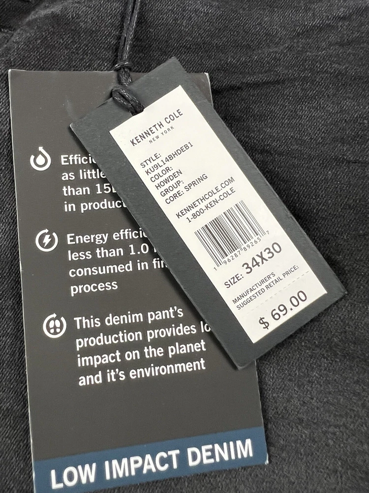 KENNETH COLE Men’s Low Impact Denim Jeans W34 L30 Stretch Slim Fit NWT