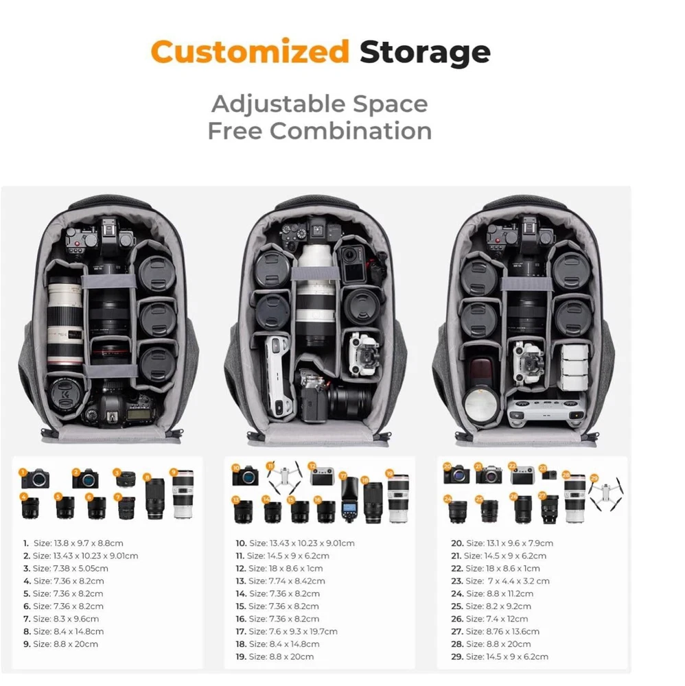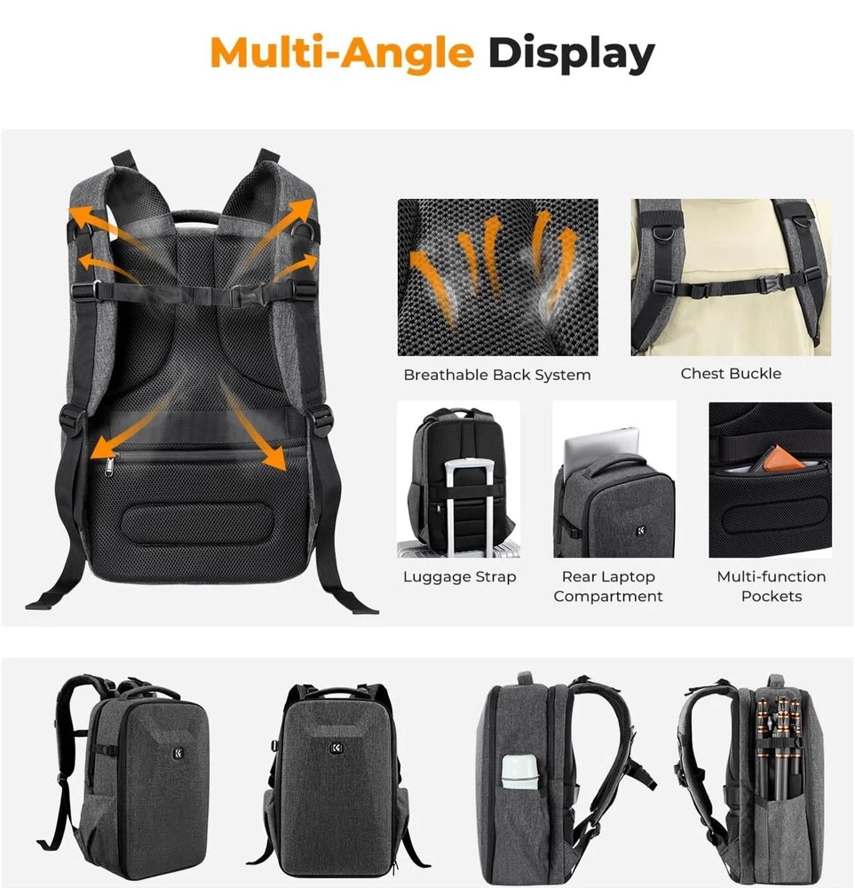 Manufacturer Warranty: 1 Year Color: Gray Item Weight: 3.94 Brand: K&F Concept Material: Canvas Model: K&F Concept 22 L department: unisex-adult To Fit: Accessory: Filter, Accessory: Lens, Accessory: Tripod, Camcorder, Camcorder: Pocket, Camcorder: Professional, Camcorder: Standard, Camera, Camera: Compact, Camera: DSLR/SLR/TLR, Camera: Miniature Type: Backpack Age Range Description: Adult Country of Origin: China Compatible Brand: Universal, For Canon, For Nikon, For Sony, For DJI, For Universal, Mavic Drone Features: Accessory Compartments, Adjustable, Anti-Scratch, Padded, Rugged, Water Resistant, With Strap