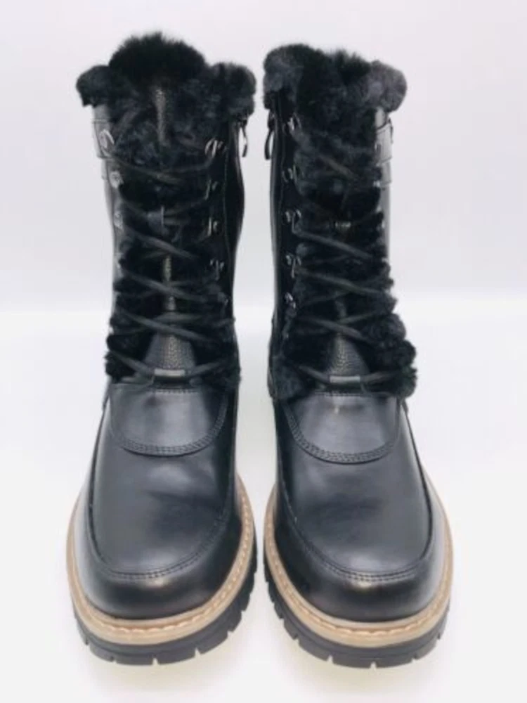 KHOMBU Womens Black Lace Reese Round Toe Block Heel Hiking Boots 7 M