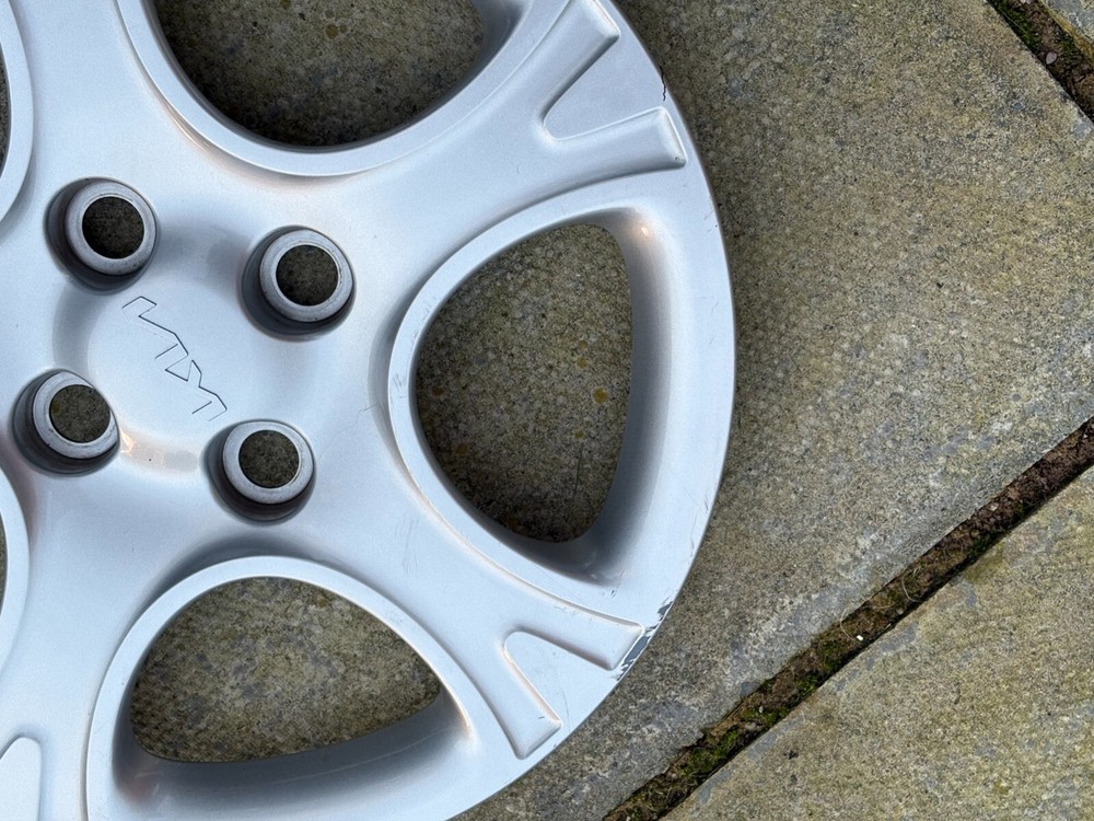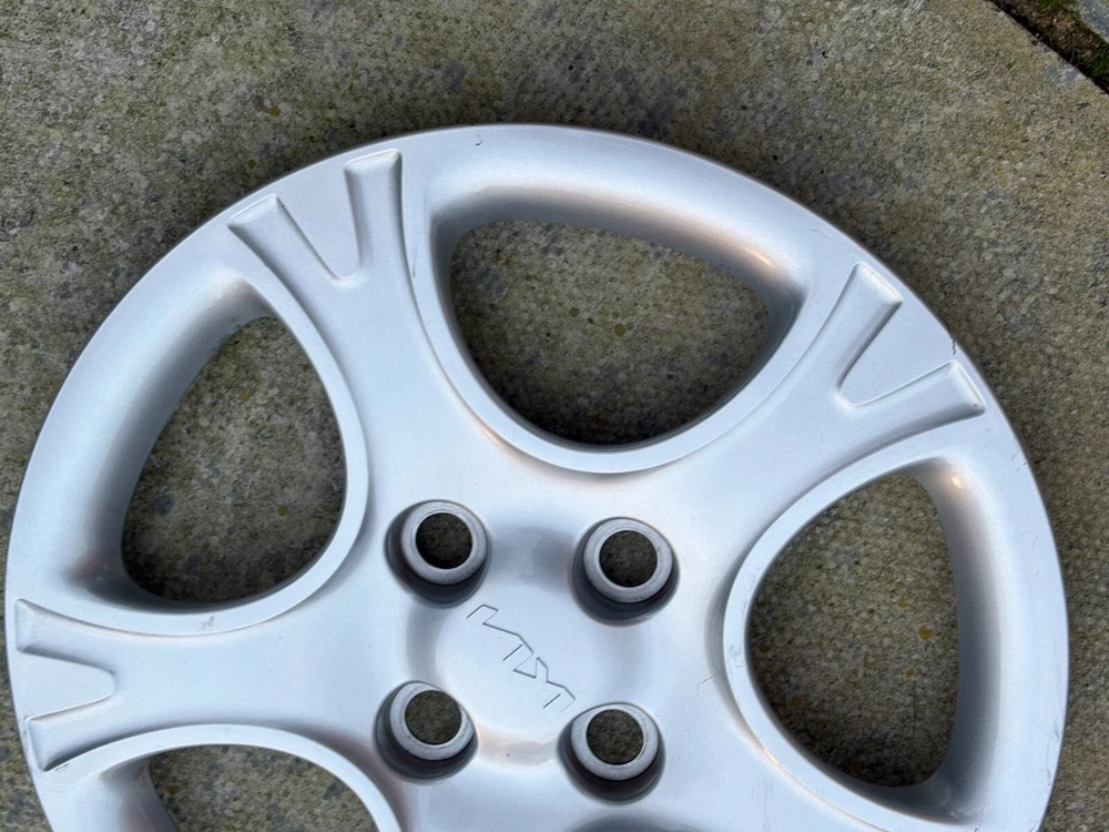 GENUINE 14'' KIA WHEEL TRIM X 1 BOLT ON TYPE HELD ON WITH WHEEL STUDS HAS ODD WEE TAR SPOT OVER IT FEW FAINT SCRATCHES EDGE OF FACE & LOWER PART OF 1 ARM FEW WEE SCRATCHES ON RAISED PART OF 2 ARMS TOWARDS EDGE (1 SIDE ONLY) 1 ARM HAS A HAS A FEW WEE SCRAPES/SCRATCHES TOWARDS EDGE + SCRAPED AT EDGE ODD WEE SCRATCH AT EDGE + SCRAPE (END OF ARM) AS SEEN IN PHOTO ANY QUESTIONS JUST ASK IS THIS THE RIGHT TRIM FOR YOU CHECK THE SIDE WALL OF YOU TYRE EXAMPLE 175X70 R14 ITS THE R NUMBER THAT GIVES YOU THE SIZE OF TRIM NEEDED 4 THIS ITEM WILL BE SENT ROYAL MAIL 2ND CLASS. THEY WILL BE WELL WRAPPED AND SECURELY PACKAGED. POSTAGE IS TO MAINLAND UK AND NORTHERN IRELAND ONLY - PLEASE CONTACT ME FOR ALL OTHER AREAS INC CHANNEL ISLANDS AND SCOTTISH ISLANDS & ISLE OF MAN RETURNED ITEMS ARE AT BUYERS COST