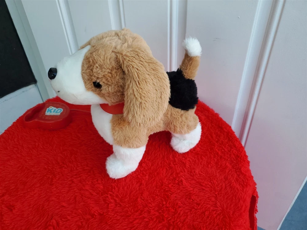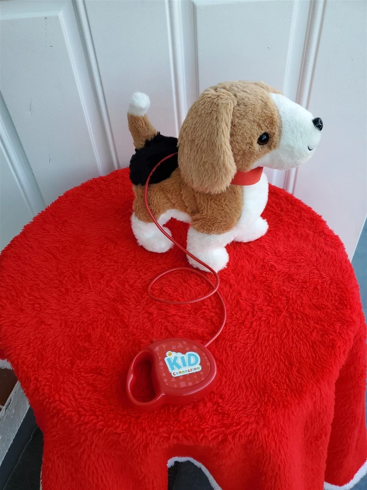 KID CONNECTION PLUSH WALKING BEAGLE PUPPY SOUND AND REMOTE CONTROL LEASH Brand: Kid Connection Walking battery-operated pet puppy plush with a remote-controlled leash Puppy can walk forward on a variety of flooring surface He makes cute barking noises (see my video) He has a soft and fuzzy coat, ribbon collar, coordinating leash, and bright, sparkling eyes Age range,3 Years & Up Breed: Beagle Puppy Measures 9" tall Uses 3 AA batteries (not included) Always ready for hugging, cuddling, and snuggling Sweet addition to your child's stuffed animal collection In Excellent working condition Please see photos for more description COMES FROM A SMOKE FREE HOME Any questions please feel free to ask me Thanks for looking! other items Powered by SixBit's eCommerce Solution