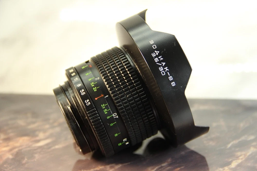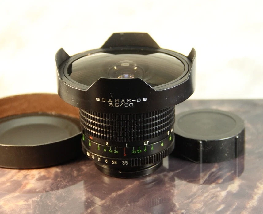 KIEV ZODIAK-8B 30mm f/3.5 Ultra Wide Angle Lens – Mount 88 Description: Rare Soviet ZODIAK-8B 30mm f/3.5 lens is an ultra-wide-angle lens with "88" mount (suitable for Kyiv-88, Kyiv-88CM cameras, and also with adapters – for other medium format and digital cameras). Specifications: Focal length: 30 mm Maximum aperture: f/3.5 Minimum aperture: f/22 Mount: B-mount (Kiev-88) Field of view: 180° (diagonally) Optical design: 10 elements in 7 groups Filter thread: 46 mm (rear thread) Minimum focusing distance: 0.3 m Dimensions: about 95 mm x 85 mm Weight: about 850 g Features: ✅ Ultra-wide angle of view (180°) – ideal for landscape, architectural and astrophotography. ✅ B-mount (Kyiv-88) – can be installed on digital cameras via an adapter. ✅ Multi-layer coating of optics – improves contrast and reduces glare. ✅ Durable metal construction – reliability and durability. Condition: 🔹 Lenses are clean, without fungus or scratches. 🔹 Mechanics work smoothly. 🔹 Diaphragm without oil, blades move freely. 🔹 Included: front cap and tube, . 💬 Questions? Ask, I will answer promptly! 🔴 Rare lens – a great choice for collectors and photographers! SHIPPING: Shipping to: Worldwide, the European Union - delivery time is about 8-16 days. Other countries - Delivery time about 18-21 days. Delivery to Italy unfortunately may take from 14 days up to 2 monthes due to slow work of Italian post service. The Australia, New zealand delivery time is about 21-35 days. Handling Time: Item will be shipped within 1-2 business days after payment is received. PAYMENT: We accept payments through PayPal. Payment must be received during 10 days after auction end. Otherwise we can't guarantee availability of it. We are not responsible for any customs tax that can be charged in a country of delivery. Please, get known the customs rules in your country before bidding. Attention: Positive feedback will be left upon completion of sale. I take our feedback seriously. If you have a problem w/your order, please contact me first before leaving negative feedback. I'll try do everything we can to resolve the issue. God bless you.