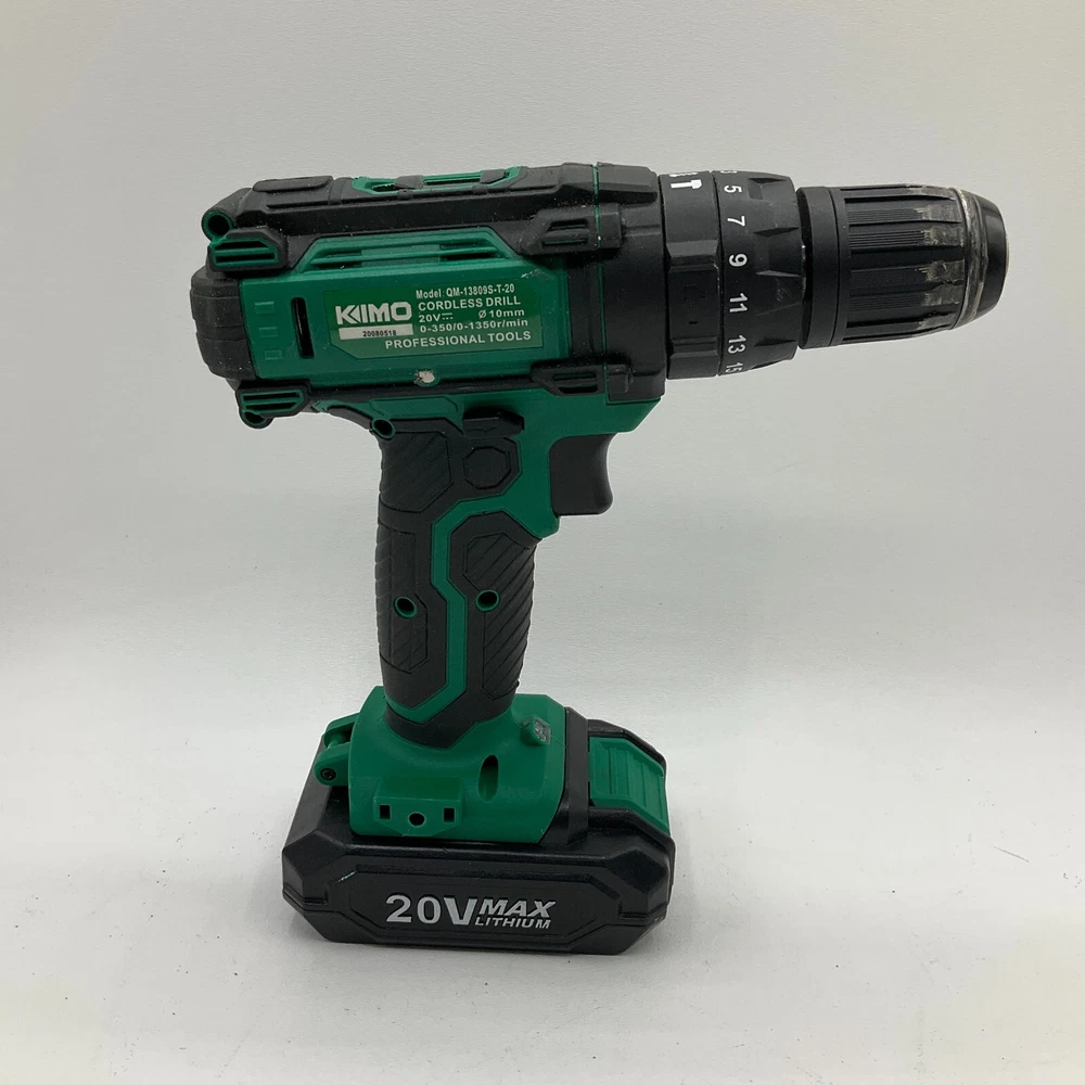 You are looking at a KIMO 20V Cordless Drill QM-13809S-T-20 with 20V Max Battery and Charger This item is previously owned. Standard wear on the tool from use. Tested working. Please see all pictures for details! About Us Customer service is our #1 priority! If for any reason you are dissatisfied with your purchase we offer a 30 day money back guarantee unless otherwise noted in the listing (AS-IS/For Parts - No returns.) We only accept items back in the condition that they were sent to you. Items that are listed AS-IS are not eligible for this money back guarantee. If you are unhappy with your purchase PLEASE contact us BEFORE leaving feedback or contacting eBay so we can work with you to resolve any problems. Shipping When we charge shipping to our customers we only pass on to our buyers exact shipping costs - no added fees. We offer combined shipping for multiple items purchased, so if you purchase more than 1 item from us, please wait for us to combine shipping costs. We require signature confirmation on all items that sell for $750.00 & more per eBay's selling policy. We also insurance all items that sell for $250.00 & more. PLEASE NOTE: WE DO NOT WORK/SHIP ON HOLIDAYS OR WEEKENDS! We use the eBay Global Shipping program for international shipping. DLLR License #991 Please note, we are not an authorized distributor or manufacture's representative of this item. *This product may contain a chemical known to the state of California to cause cancer and birth defects or other reproductive harm* Track Page Views With Auctiva's Counter