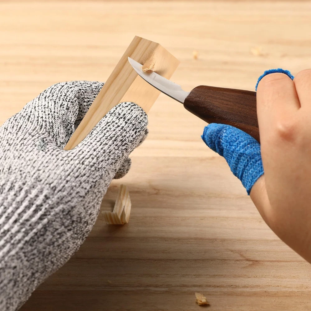 Wood Carving Kit for Beginners: We offer carving knifes, chiselling knifes, leather + polishing compound, wood blocks, protection measure. Perfect gift for who want to start a wood carving journey. Perfect Protection: One pair cut-resistant gloves, 2pcs self-defensive bandage wrap to protect your finger from cutting. 10pcs Wood Carving Knife: 4 whittling with 6 chiselling knifes to make a breeze for large area whittling and detail work. 14pcs Wood Block. The different sized wood blocks are made of the common basswood, which is the softest and easiest wood to use. All in One: Whittling knife × 4, chiselling knifes × 6, cut-resistant glove × 2, self-defensive bandage × 2, leather stripe × 1, polishing compound × 1, sharpening stone × 1, wood block × 14, storage box × 1, blade protector × 10, package box × 1.