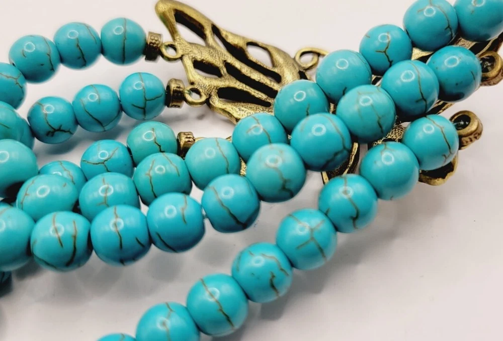 KIRKS FOLLY BUTTERFLY Stretch Bracelet Turquoise Layered Antique Gold tone