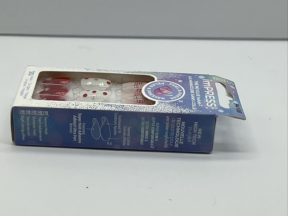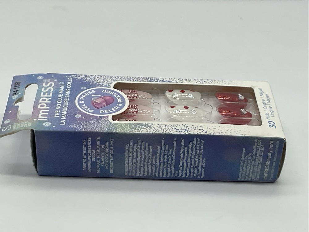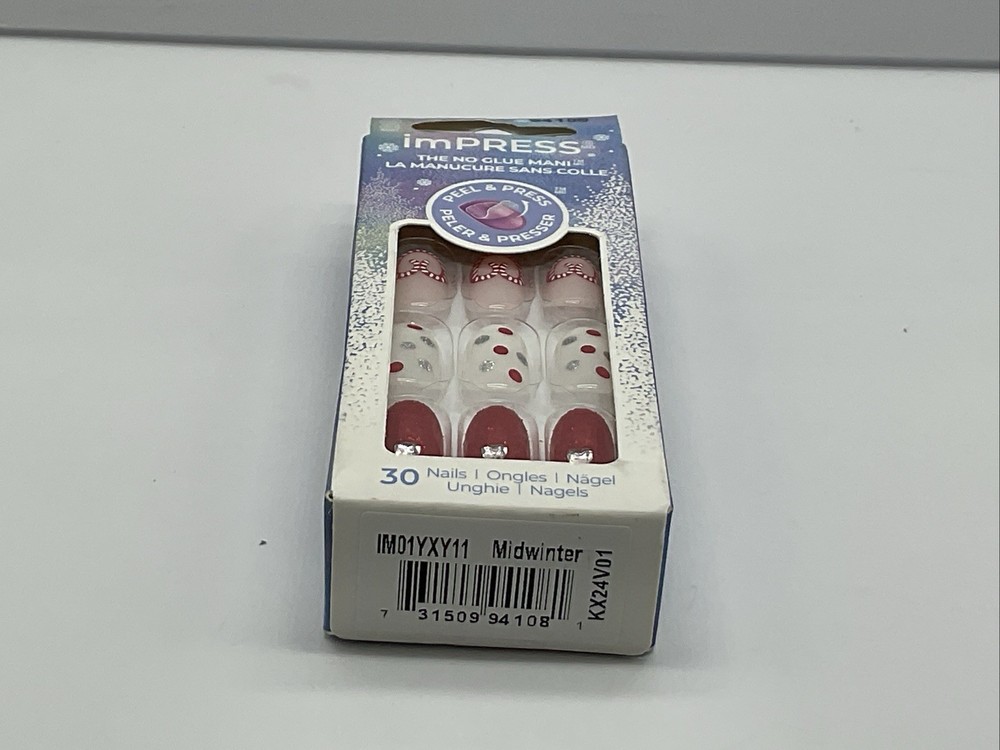 KISS Impress Press-On Nails Designs Holiday Midwinter Red - Short Oval 30 Count.