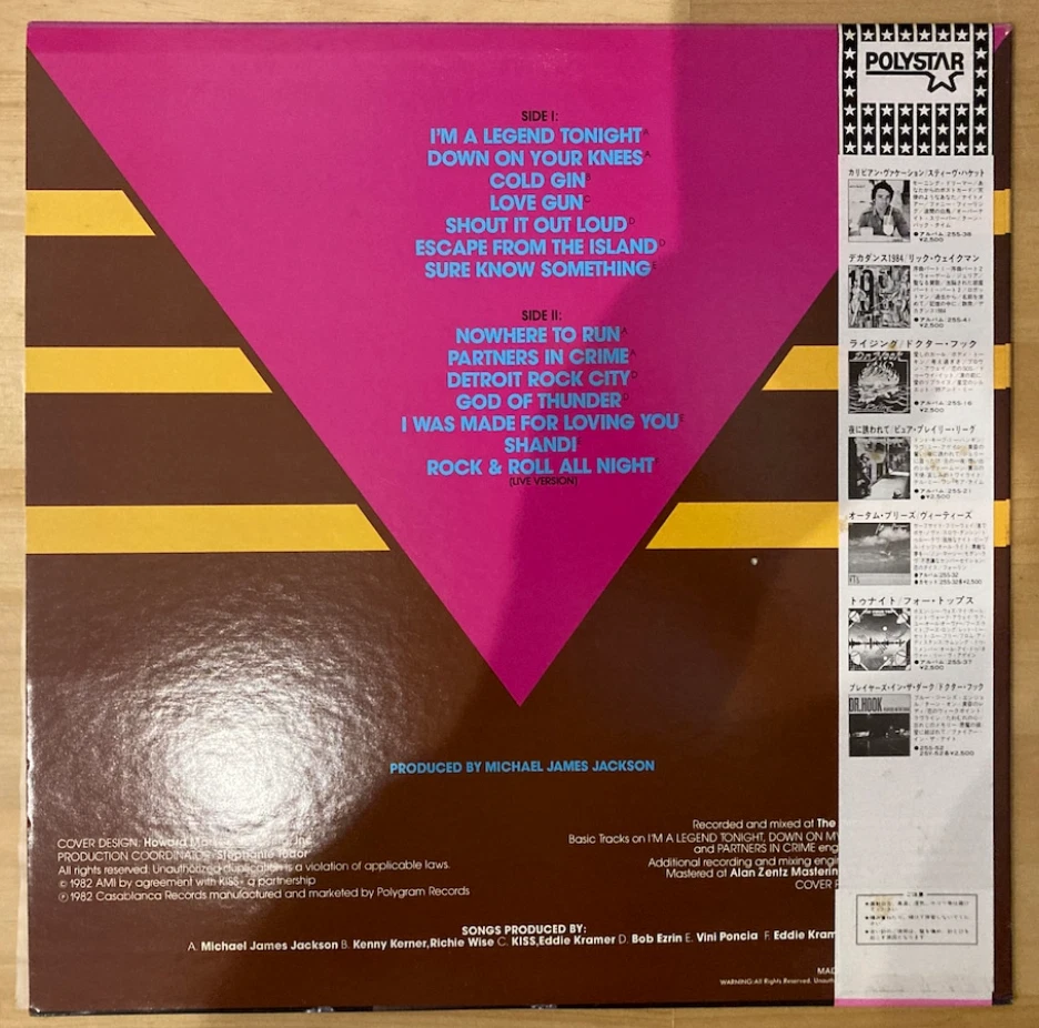 KISS / KILLERS JAPAN ISSUE LP W/OBI, INSERT 28S-58