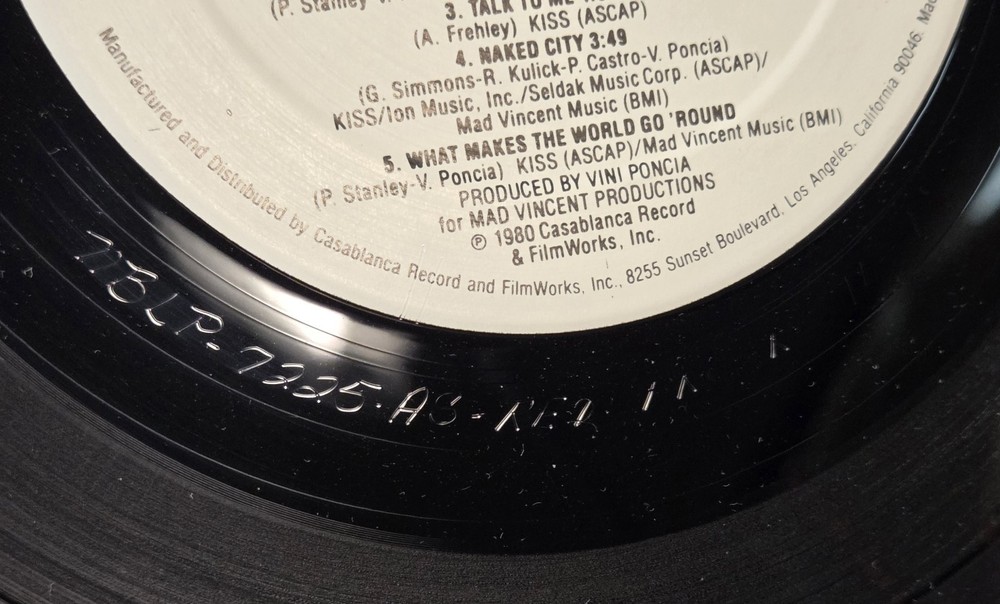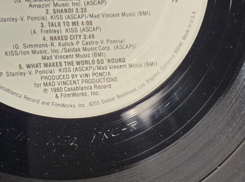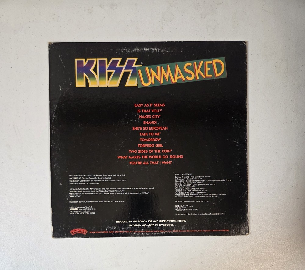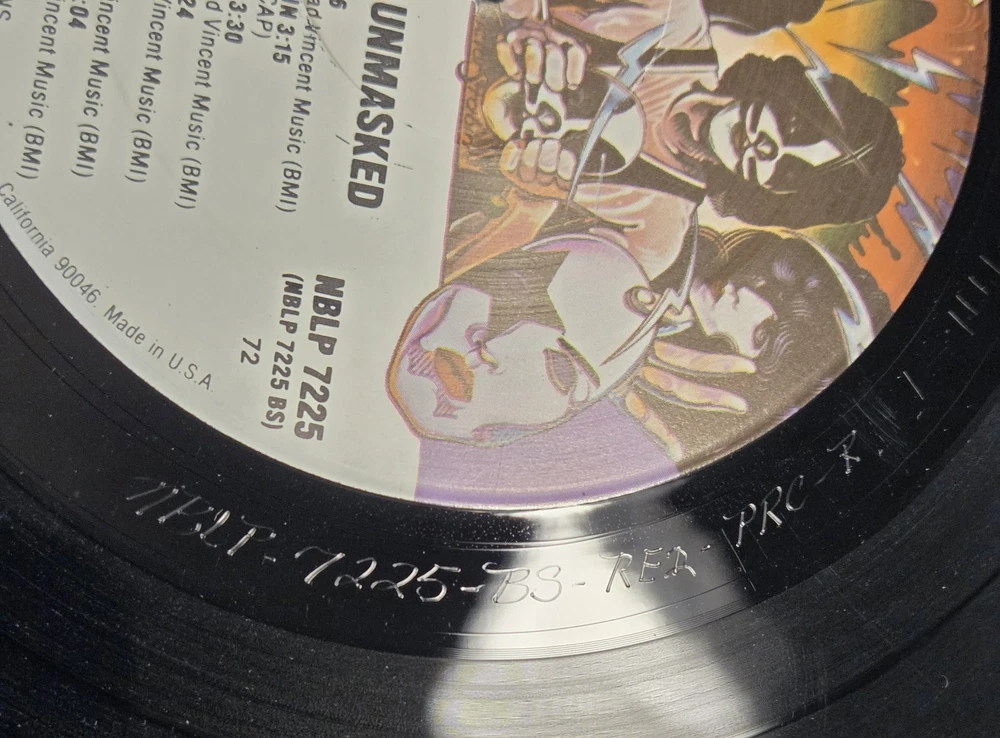 Artist: KISS Title: Unmasked Label: Casablanca Records Catalog Number: NBLP 7225 Year: 1980 Format: Vinyl LP, Stereo Country: USA โ Pressing Details (Verified) Original 1980 US pressing Sterling Sound mastered (STERLING stamped in deadwax) PRC Richmond pressing (PRC etched) Correct Casablanca labels Not a reissue, not a club pressing Deadwax / Matrix Info: Side A: NBLP 7225 A5-R A / STERLING / PRC Side B: NBLP 7225 BS-REO / STERLING / PRC ๐ Condition Vinyl: VG+ Glossy with light surface marks consistent with careful play No deep scratches observed Plays strong with minimal background noise (typical of VG+) Cover: VG+ Original comic-style cover and back Light edge wear and surface scuffing No splits, no writing, no cut-outs (Please review photos for exact condition โ they are part of the description.) ๐ธ Why This Copy Matters This is a true original US Sterling-mastered pressing, not a later repress. Collectors actively seek STERLING + PRC copies for sound quality and authenticity.