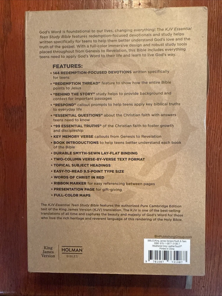 Item Height:1.8 inGenre:BiblesAuthor:Holman Bible PublishersItem Weight:16 Ozgtin13:9781087731087Item Width:6.7 inFormat:Imitation LeatherLanguage:EnglishItem Length:9.8 inBook Title:Kjv Essential Teen Study Bibles, Weathered Grey LeathertouchTopic:King James Version / Youth & Teen, King James Version / Devotional, King James Version / Study, King James Version / GeneralPublication Year:2023Number of Pages:1350 PagesISBN:9781087731087Publisher:B&H