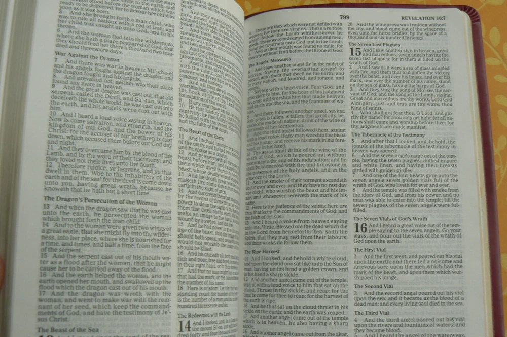 Holy Bible King James Version Red Letter Edition This leather-like ultra-slim Bible is in excellent condition! The only marking anywhere is a colored-out name on the presentation page. (Please see the seventh photo.) ALL the rest of the Bible is crisp and clean. The gilt-edged pages are very nice too. The beautiful plum-colored cover has embossed flowers that run vertically near the spine -- on the front and the back. The ribbon marker looks unused. This contains an expanded family record section, concordance, maps, and more. You won't be disappointed! I have several Christian fiction and nonfiction books (and other books/items) listed. Please take a look; I'm happy to combine shipping whenever possible. ~~~~~~~~~~~~~~~~~ I normally mail ON the day I receive payment if it's received before 1 p.m. central time, and the next day if it's later than 1. Please take a look at my other listings; I'm listing several school books (and others!) right now and am happy to combine shipping. All items coming from a smoke-free, pet-free home! Thanks so much for your time! Before leaving your feedback, if for any reason you feel I did not deserve or earn 5 stars in each category, please let me have the opportunity to make it right. I want every transaction to be 5-star worthy! Thanks so much! :)