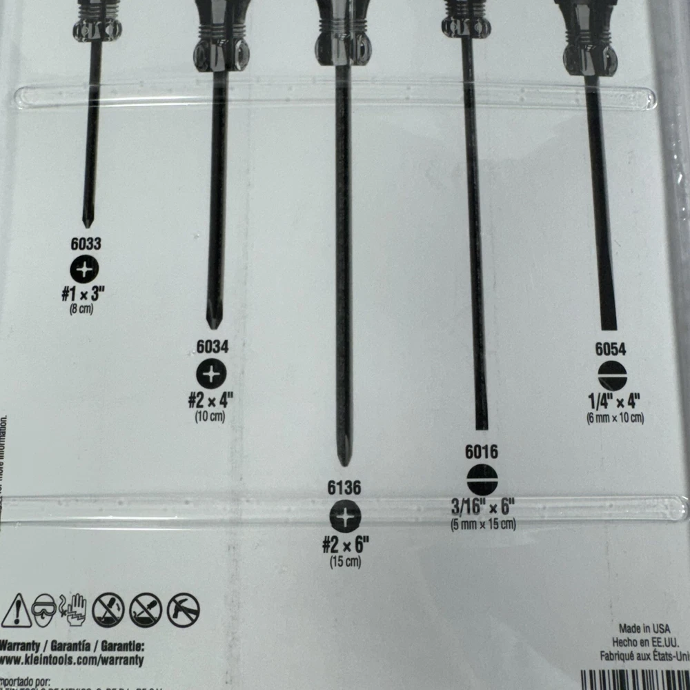 KLEIN Tools 5 Piece Blackout Series Screwdriver Set Limited Edition Made in USA! 85805BLK You'll know exactly which drivers are yours on the jobsite. These are perfectly blacked out. Black Grips, Black plastic, Black shanks! 5 Piece Set Includes: (1) #1 x 3" (1) #2 x 4" (1) #2 x 6" (1) 1/4" x 4" (1) 3/16" x 6" MADE in USA We ship daily. Your item will ship SAME DAY!!