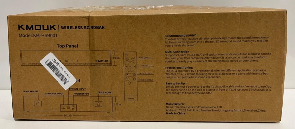 KMOUK KM-HSB001 Black PC Gaming Computer Soundbar Speakers