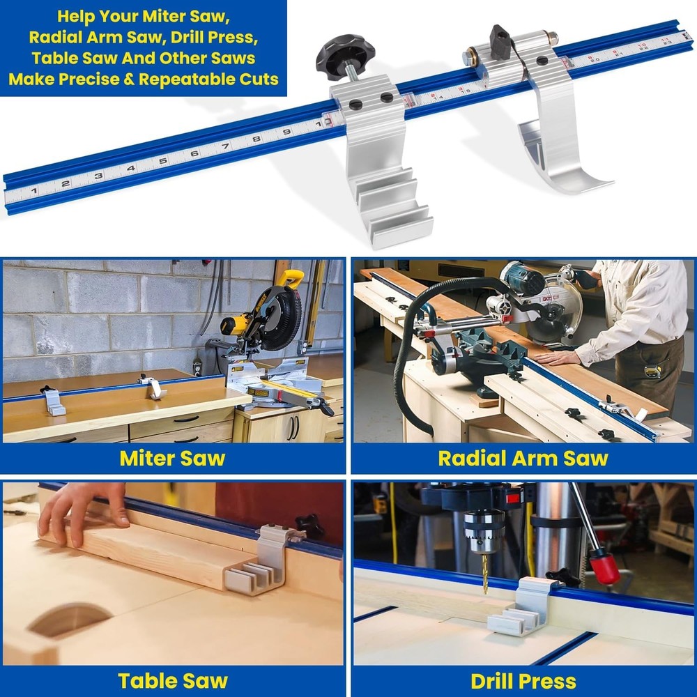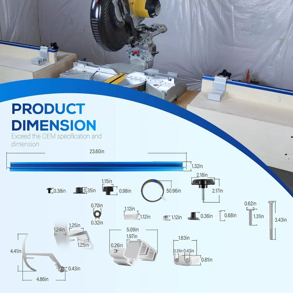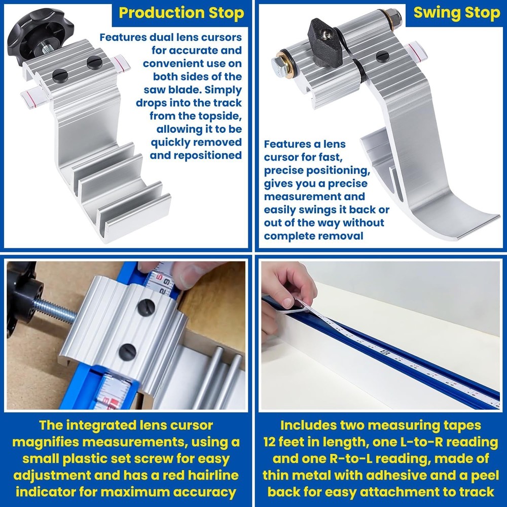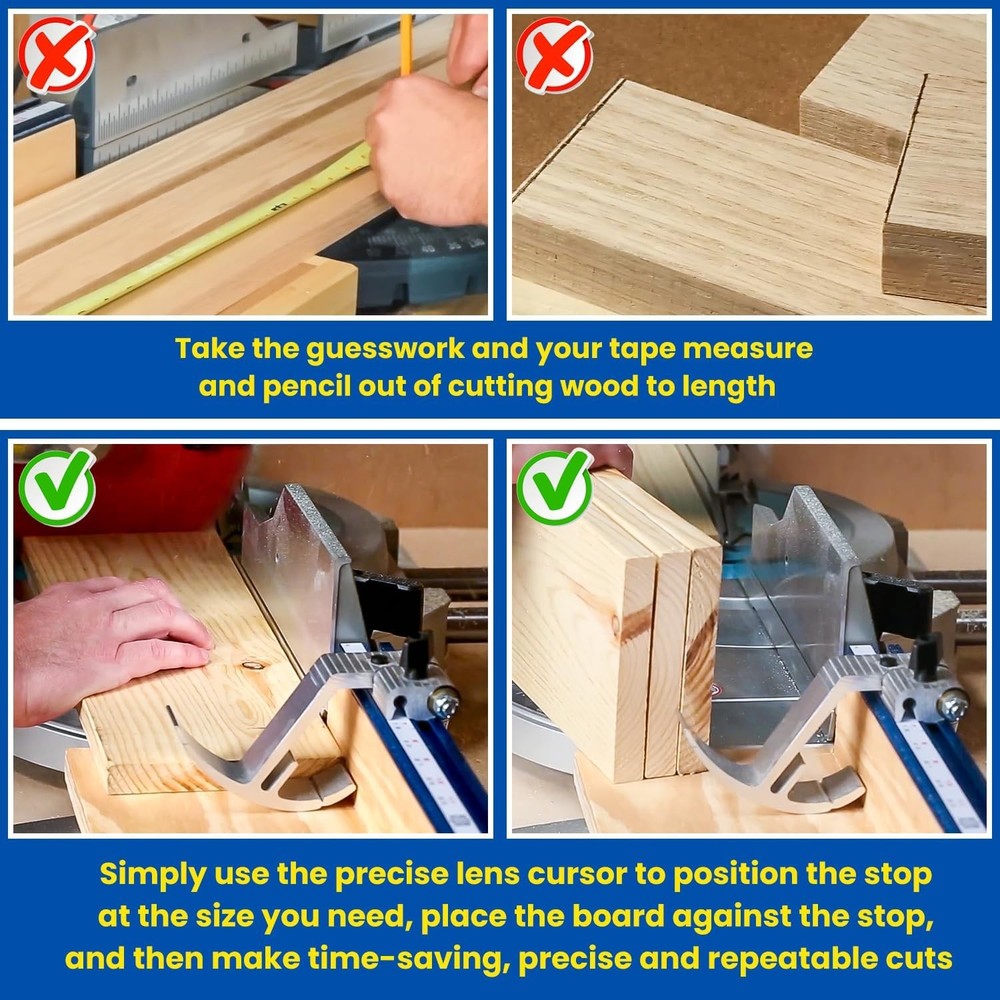 KMS8000 Precision Trak & Stops Kit - Track Guide for Kreg Miter Saw Woodworking Essential Function: This Precision Track and Stop Kit is designed to turn a miter saw into a precise cutting system that allows repeatable and accurate cutting woods. Variety Applications: The kit can be added to a miter saw, radial arm saw, or drill press, making it versatile and useful for various woodworking applications. Great Benefits: Using the Precision Trak and Stop Kit eliminates the need for guesswork, tape measures, and pencils, ensuring every cut is the exact desired length. It saves time and improves accuracy in repetitive cutting tasks. Premium Material: The Tracks and the stops are constructed from rigid and durable anodized aluminum, making them strong and long-lasting, These items are all CNC machined and cut to achieve a high precision feature and smooth edge. High-value Measure Kit: This Precision Track and Stop Kit provides woodworkers with a reliable and efficient way to achieve precise cuts consistently. It enhances the performance of miter saws and other tools, simplifying woodworking tasks and delivering accurate results. Specifications: Come with 4 pieces 2'(610mm) top track(Combines to achieve 8' cutting length), 1x Swing Stop(features a precision lens cursor). 1x Production Stop(features two lens cursors). 2x 12'(3657mm) self-adhesive tapes, one reading from right to left while the other one reading from left to right. Also comes with instructions and mounting hardware for easy setup. Payment Delivery details Terms of sales Contact us Payment Orders will be ship out within 1-3 business days after payment has cleared. Delivery details Orders from Saturdays, Sundays or holidays will process on next business day and will be ship within 24 hours. Some shipments could take longer subject to your local customs authorities. We only ship to confirmed ebay addresses. Your ebay address MUST MATCH your Shipping address Terms of sales We accept 60 days return guarantee for all Items If you are unsatisfied with something you bought from us, you may send it back within 60 days of receipt, and we shall be happy to exchange or refund. Contact us If you have any question, please email contact me, we can solve all the problem. Brand For Kreg Type Precision Trak and Stops Kit Material Aluminum MPN KMS8000
