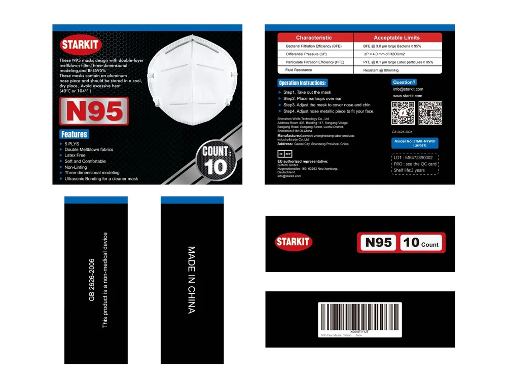 PREMIUM QUALITY SUPPLY Medical Supplies Distributor Wholesale Medical Supplies Fast Shipping STARKIT Disposable KN95 Face Mask - High Quality 95% Filtration Effect (20 Pack) This product consists of the mask body, nose clip and mask band. The mask body has three layers in its structure: Inner and Outer layers are made with Polypropylene (PP) non-woven fabric The 2nd layer is moisture-wicking and deflecting The 3rd & 4th layers are made with PP Meltblown cloth. The mask band is elastic made of spandex. ***Come in Hygienically Sealed Packs of 10 Masks *** FEATURES Suitable for adults’ daily travel protection, not suitable for toxic gas environment use. Not intended as a replacement for gas masks and medical masks. Not for use if breathing is impeded or unsteady, or during sleep. Please use mask correctly to avoid serious consequences caused by improper use. Store in a dry and ventilated location 23ºF – 122ºF (-5ºC – 50ºC, relative humidity<80%). Masks are disposable and cannot be washed. VERSATILE:Keep your mouth covered and protected from pollution, fluids and dust. COMFORTABLE & FITS MOST: Mask is made of non-woven fabric for improved breathability. Use of elastic ear loops means that it fits most. Suitable for personal and professional use: Cleaner, Builder, Doctor, Student. Great for painting, construction, nail salons, medical, dental uses and people with allergies. Fog and haze weather, Gray sky, Hospital, Fog weather, Flu season, Dust weather, Snow weather, Building site, etc. Premium Quality Supply specializes in providing customers with a wide variety of medical supplies, sanitary, and health related products for medical professionals, commercial businesses, and individual customers. We also specialize in personal protective equipment (PPE) such as 3-ply face masks, KN95 face masks, and N95 masks for medical professionals, face shields, gloves and hand sanitizer. We strive to ship your order promptly. Contact us for inquiries and Please visit our Ebay store! FDA Registered Facility Hand Sanitizer Gloves 3-Ply Masks N95 Masks KN95 Masks Contactless Infrared Thermometers UV Sanitizing Boxes SEE OUR OTHER ITEMS PAYMENT See our other items Domestic Shipments Ships from U.S.A. – Delivery by USPS or UPS with delivery confirmation for most items. Some items may be subject to additional processing/shipping time through the postal service due to product shipping restrictions. U.S. locations outside the continental U.S. may be subject to additional shipping charges. Lithium cells are shipped ground only. International Shipments No International Shipping is available for PPE products (including Hand Sanitizers and Face Masks). SHIPPING Domestic Shipments Only (ORM-D) - Hand Sanitizers are considered to contain hazardous material and are shipping using ground service only in most cases and for domestic transport only. These are marked under the ORM-D (Other Regulated Materials for Domestic Transport Only) regulation as there may be a limited hazard during transportation, due to the alcohol contained inside the product. Payment - We accept payment by any of the following methods: PAYPAL, MASTERCARD, VISA, AMEX, DISCOVER Please pay as soon as possible after winning an auction, as that will allow us to post your item to you sooner! All payments must be received within 7 days of auction end. Dispatch Times - We normally dispatch your order within 24 hours (Mon-Fri Only). Your goods are shipped from the continental United States. Auctions won Friday evening through Sunday are not processed until the next business day. Business hours areMonday-Friday 9am-5pm EST. Bulk - If you are planning on buying multiple items in bulk please message us first so we can discuss combined shipping cost for international shipping. We apply a different shipping cost calculation for orders over a certain weight. Please don't order the items then ask about shipping cost in the notes. Thank You TERMS & CONDITIONS Customer Service Hours Monday-Friday 9am-5pm EST. Hours - Auctions won Friday evening through Sunday are not processed until next business day. Business hours are Monday-Friday 9am-5pm EST. RETURNS If you are not 100% satisfied with your purchase, you can return the product in its original packaging and get a full refund or exchange the product for another one, be it similar or not. You can return a product for up to 30 days from the date you purchased it only if it is Unopened and Unused . Any product you return must be in the same condition you received it and in the original packaging. If we sent an item different from the item you ordered, or if the item is defective we will pay for the return shipping all Domestic orders. Otherwise, we expect the customer to cover any return shipping charges. For buyers in any location, you have the option of using the carrier of your choice to return your order to us. We recommend shipping with a method which includes tracking and insurance for your return shipment. Keep this number handy as it will serve as proof of delivery back to us. In cases, where the item is not received or lost, the D.C. number proof of delivery will allow us to refund the customer. Please make sure there is some reference of the original order no. on your package or inside the package. International shipments should be marked as a "Merchandise Return" with a carrier that does not levy brokerage fees. Customer is responsible for any applicable brokerage or customs charges. Our return address is: We offer same day shipping, fresh stock, and the lowest price, guaranteed. If you have any questions about the product please feel free to send us an email and we will be happy to answer any questions you might have. Have You Seen Our Ebay Store? Visit eBay Store: Premium Batteries THANK YOU AND HAPPY BIDDING! DESCRIPTIONThis product consists of the mask body, nose clip and mask band. The mask body has three layers in its structure: ---Inner and Outer layers are made with Polypropylene (PP) non