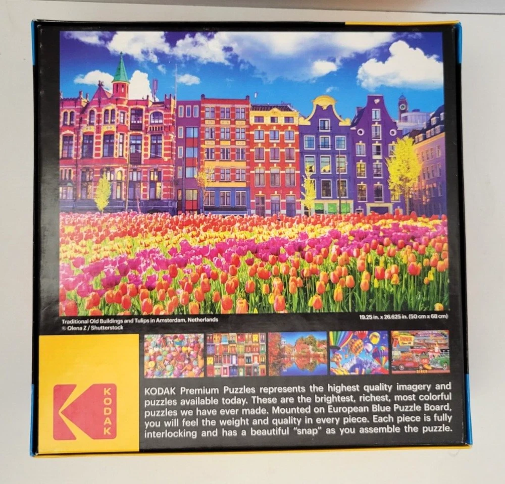 KODAK 1000 Piece Jigsaw Puzzle Traditional Old Buildings & Tulips in Amsterdam, Netherland Each item is carefully packaged to prevent any damage and is shipped immediately with tracking.