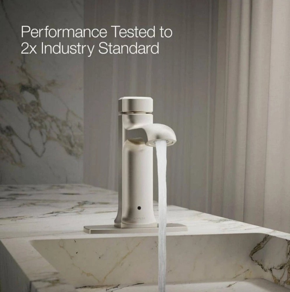 Elevate your bathroom with the KOHLER Rubicon Battery Powered Touchless 1006-655-634 Vibrant Brushed Nickel Bathroom Faucet. This modern, high-arc faucet features a sleek design with a brushed nickel finish that adds a touch of elegance to any bathroom. The touchless technology allows for easy and convenient use, while the water conservation feature ensures that you are using less water without sacrificing performance. This faucet is suitable for a kitchen faucet and has a single-hole mounting type with an 8-inch faucet hole spacing. The unit is a metal unit with a pull-down drain and a vibrant brushed nickel finish. The faucet has a height of 7.5 inches and a spout height of 5 inches. This product comes with a 5-year manufacturer warranty and is low lead compliant.