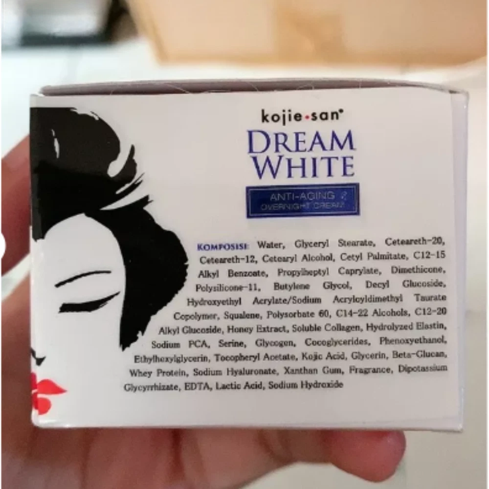 KOJIE SAN Dreamwhite Face Cream Over Night 30 g A concentrated moisturizer that helps revitalize and nourish skin during sleep. This high level of kojic acid and collagen can help revitalize and nourish the skin during sleep. then what moisturizes & tightens on the face and neck is the Milk Peptide Complex (MPC) so that it is smooth and bright in the morning. helps reduce the appearance of fine lines and wrinkles on the face. Capacity : 30 g / 1.06 oz (Free Soap) How to use : Apply the cream on cleansed face and neck, for maximum results use every night. ALL THE PRODUCTS ARE BRAND NEW AND AUTHENTIC! Disclaimer In case of having side effects such as red rash, swollenness and/or itching while using this skincare or cosmetic, or in case such symptomps appear by direct sunlight after using it, consult a dermatologist immediately. Precaution for treatment and storage. Keep out of reach from children. Avoid the place where the direct sunlight Product Condition We always distribute health and beauty products in its original manufacturer packaging the size writing on each of the packaging labels based on the net measurement. Sometimes you may find the container does not have the full capacity, but that doesn't determine that we are cheating or reducing the content. Some of the products may come with a sealed package; some may not, and we do not accept complaints about non sealed containers since they are beyond our capacity. Shipping We ship from Indonesia using economy international shipping We will process your order within 1 to 3 business days . Estimate arrival date is between 12 to 30 business days depend on your location Please note that delivery dates aren't guaranteed and may include extra transit time because of unforeseen delays. Late deliveries are always a possibility; however, we will try our best to ensure all deliveries arrive on time For holiday seasons, shipping will take longer time to reach. Please be patient when awaiting your item. Please make sure your shipping address is correct before you place an order. Your address must include a contact phone number. This is very important since shipping company require it. Our prices not include local taxes and tariffs which may apply in your region. Customers outside of Indonesia may be subject to customs fees and/or import duties and taxes, which are levied once a shipment reaches your country. Additional charges for customs clearance must be borne by you; we have no control over these charges and cannot predict what they may be. Customs policies vary widely from country to country. You should contact your local customs office or tax authority for information specific for your situation. Return: If you having any problem with the product, please chat us first within 30 days before requesting a refund. We will assist you If item has already shipped and you decide you do not want it or you want to ask for item's replacement, please return the item within 30 days and make sure it's in a good condition. Return shipping is the buyer's responsibility unless the return is a result of our mistake or otherwise stated. And if you decide to ask for money back (after receive the item), refund will be given m inus Shipping Cost. Feedback If you are satisfied with our service, please give us a 5-stars positive. If there is any problem, PLEASE contact us before leave any negative feedback. Your satisfaction is our priority. Thank you for visiting us and for your purchase. Please contact us with any questions you may have.