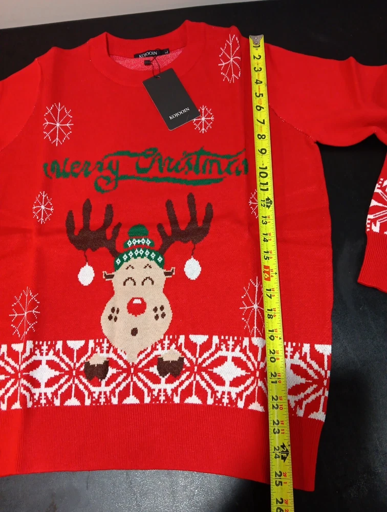 New with tags. Women's size Large ugly Christmas sweater. Measurements are also pictured in the listing. Thanks for looking. Fast, free shipping Chest from armpit to armpit: 20" Top of the shoulder to sweater bottom: 25"