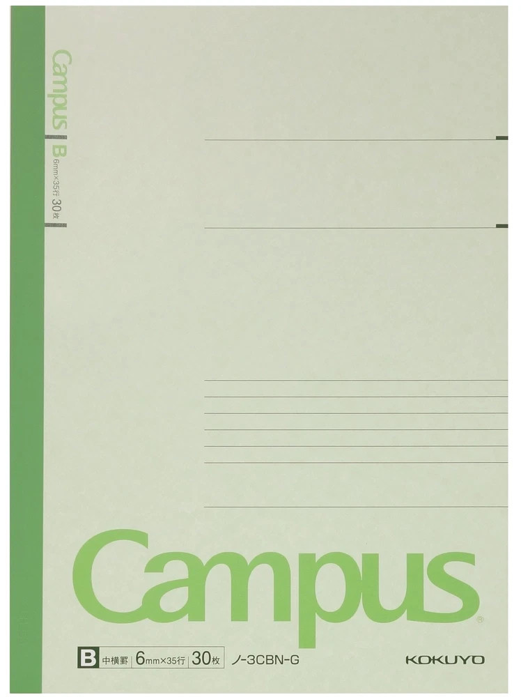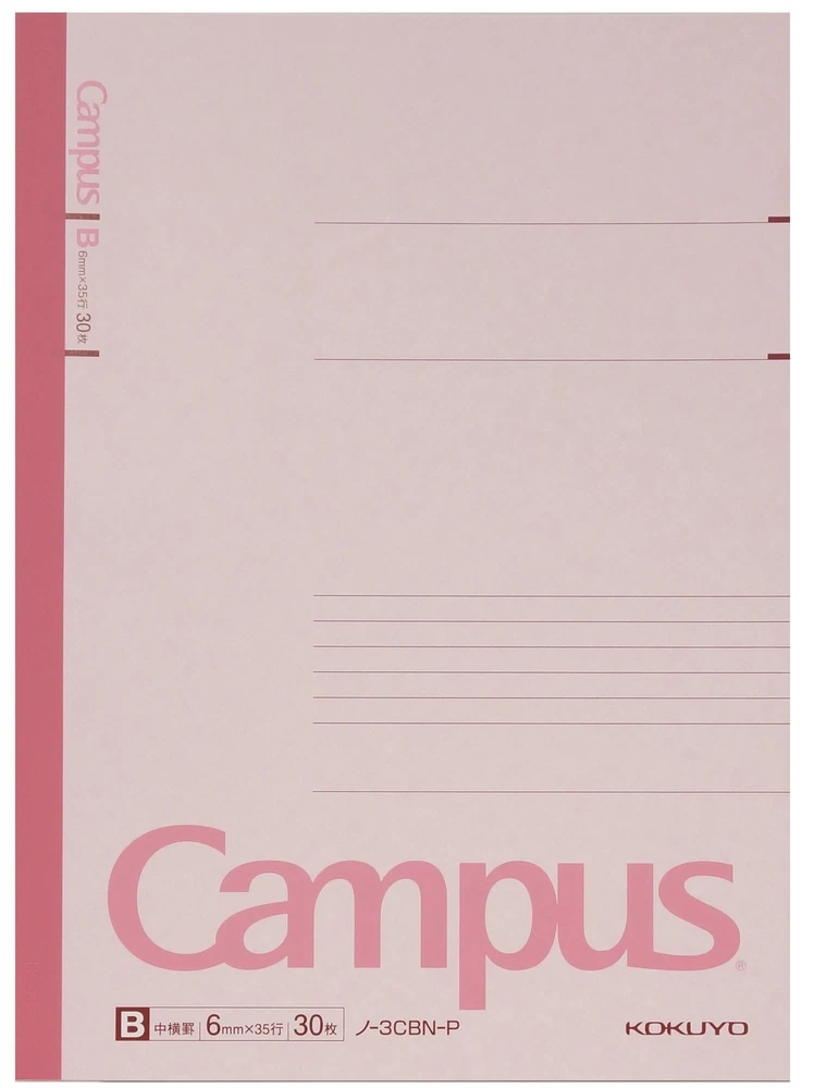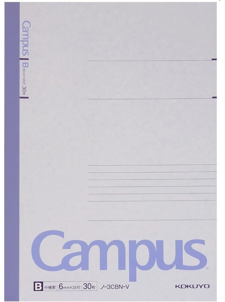 Kokuyo Campus Notebook, B 6mm Ruled, Semi-B5, 30 Sheets, 35 Lines, Pack of 5, 5 Colors, Japan Improt (NO-3CBNX5) 5 Colors: A 5-color pack of Light Blue, Light Green, Pink, Purple and Yellow notebook, which is convenient to use by color-coding each subject. Kokuyo Original Paper: FSC-certified paper and covers made of recycled paper pulp. Make sure you have a comfortable and satisfying writing experience, and the original paper is bleed resistant and acid-free that is suitable for long-term storage. Wireless Binding: Solidifies the spine with glue instead of thread, so it can be opened flat and not easy to fall apart. This makes every page easy to write and read. 44.1 lbs can be hanged on each single page of Campus notebook, so it is not easy to peel off and is safe to use for a long time. Tearing Resistant: The spine cloth is made with a special film laminated to the surface of the paper so it is resistant to tearing and abrasion. And you can easily write a title on the spine cloth with a ball pen, which is very convenient when you take out the desired notebook on the shelf. Functional Cover: A highly functional cover which is designed with space for writing titles and names.