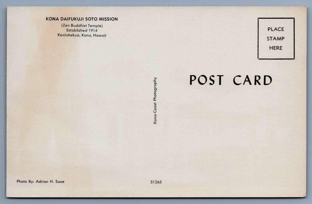 KONA DAIFUKUJI SOTO MISSION (Zen Buddhist Temple) postcard B3