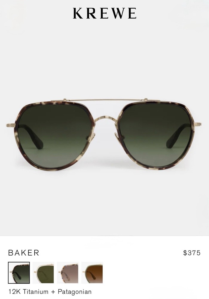 KREWE Baker 12K Titanium + Patagonian Sunglasses Modern heritage meets elevated edge. The KREWE Baker in Patagonian blends a bold aviator silhouette with refined materials, offering a fresh take on a timeless classic. Featuring oversized lenses, acetate accents, and sleek 12K gold-plated titanium hardware, this frame is designed for those who like their statement pieces to feel effortless. Handcrafted with precision, the Baker is built from a combination of glossy acetate and glossy 12K gold-plated titanium. The frame is fitted with petite integral titanium hinges for enhanced durability and lightweight wear. Adjustable nose pads and a custom temple wire ensure a personalized, secure fit. As with all KREWE eyewear, each pair is handcrafted—expect subtle variations in color and pattern that make every frame truly unique. The custom dark green gradient lenses provide 100% UVA and UVB protection, while anti-reflective and scratch-resistant coatings offer added clarity and resilience. This frame is prescription ready for those who want performance with polish. Note: This item is 100% authentic and brand new, sourced from boutique overstock and showroom pulls. Due to this, original packaging (case/box) is not included. We stand by every item we sell—if you have any questions or concerns, we’re always here to help.