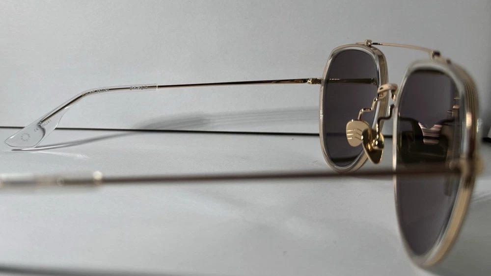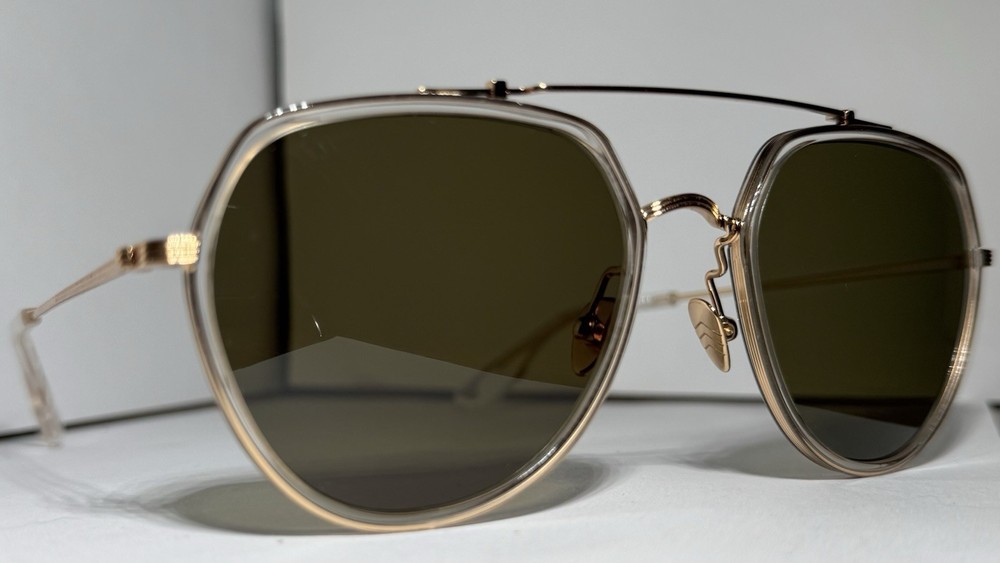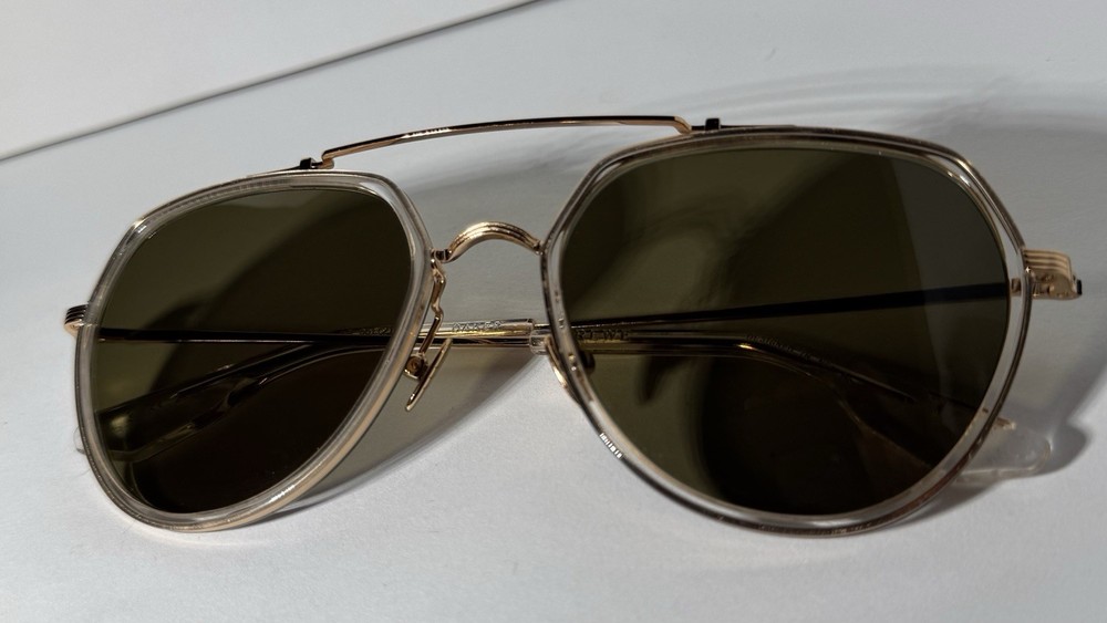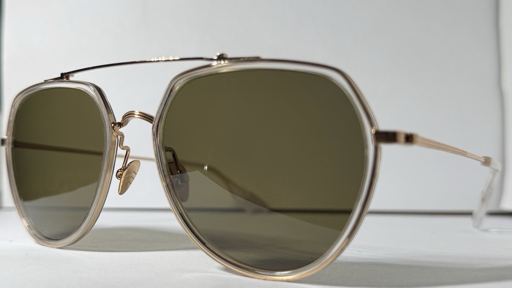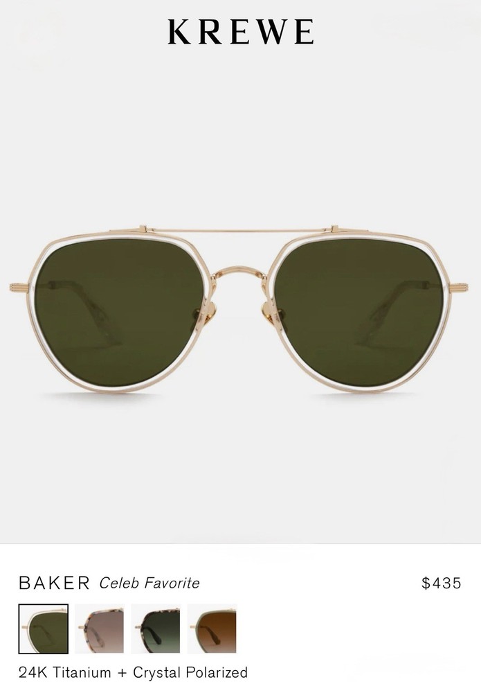 KREWE Baker 24K Titanium + Crystal Polarized Sunglasses The modern pioneer. The KREWE Baker 24K Titanium + Crystal Polarized Sunglasses check every box with their oversized aviator silhouette and refined mixed-material construction. Designed for versatility, Baker transitions seamlessly from casual to polished, making it a standout staple in any collection—and a proven celebrity favorite. Handcrafted from glossy crystal acetate and 24K gold-plated titanium hardware, this frame balances lightweight comfort with lasting durability. Adjustable nose pads and temple wires ensure a secure, personalized fit, while petite integral titanium hinges add structural strength. Each pair is handmade, resulting in subtle variations in pattern and finish that make every frame unique. The custom Grass Green Polarized lenses complete the look with striking clarity and functionality. Offering 100% UVA and UVB protection, these lenses reduce glare with polarization and feature anti-reflective and scratch-resistant coatings for everyday durability. This frame is also prescription ready, combining bold style with practical versatility. Note: This item is 100% authentic and brand new, sourced from boutique overstock and showroom pulls. Because of this, original packaging (case/box) is not included. We stand by every item we sell—if you have any concerns, we’re here to help.