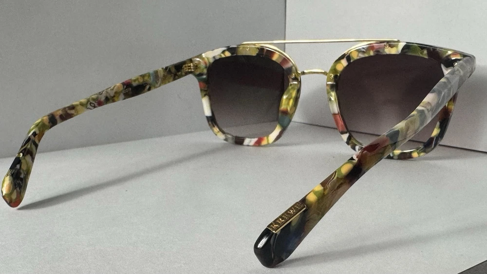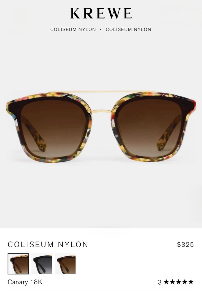 KREWE Coliseum Nylon Canary 18K Sunglasses An aviator silhouette with a KREWE twist, the KREWE Coliseum Nylon Canaryredefine bold elegance with a strikingly modern design. Featuring squared lenses with rounded corners, this frame blends classic inspiration with a contemporary edge, offering a refined yet effortless look. Borrowing elements from the iconic CLIO NYLON sunnies, the Coliseum showcases an integrated brow bar and bridge, crafted from a single piece of 18K gold-plated stainless steel that seamlessly wraps around the acetate edge for a luxurious finish. Handcrafted with precision, this frame is a seamless fusion of glossy acetate and glossy 18K gold-plated stainless steel hardware, delivering both durability and sophistication. Riveted 5-barrel hinges enhance structural integrity, while adjustable temple wires ensure a customized and secure fit. Each pair is uniquely handmade, featuring subtle variations in pattern and color that make every frame truly one of a kind. The custom Amber lenses add a bold yet refined touch to the frame’s sleek aesthetic. Designed for both style and protection, these seamless edge-to-edge nylon lenses offer 100% UVA and UVB protection while anti-reflective and scratch-resistant coatings enhance clarity and long-lasting durability. Due to the unique construction of this frame, prescription or customized lenses cannot be added Note: This item is 100% authentic and brand new, sourced from boutique overstock and showroom pulls. Because of this, original packaging (case/box) is not included. We stand by every item we sell—if you have any concerns, we’re here to help.