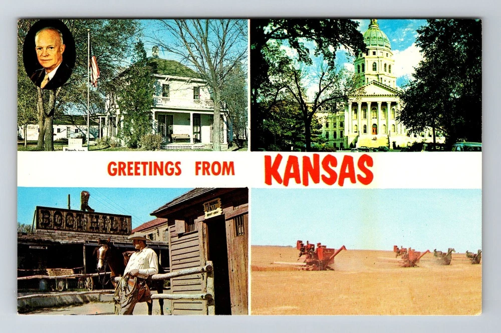 KS-Kansas, Scenic Banner Greetings, Landmarks, Vintage Postcard