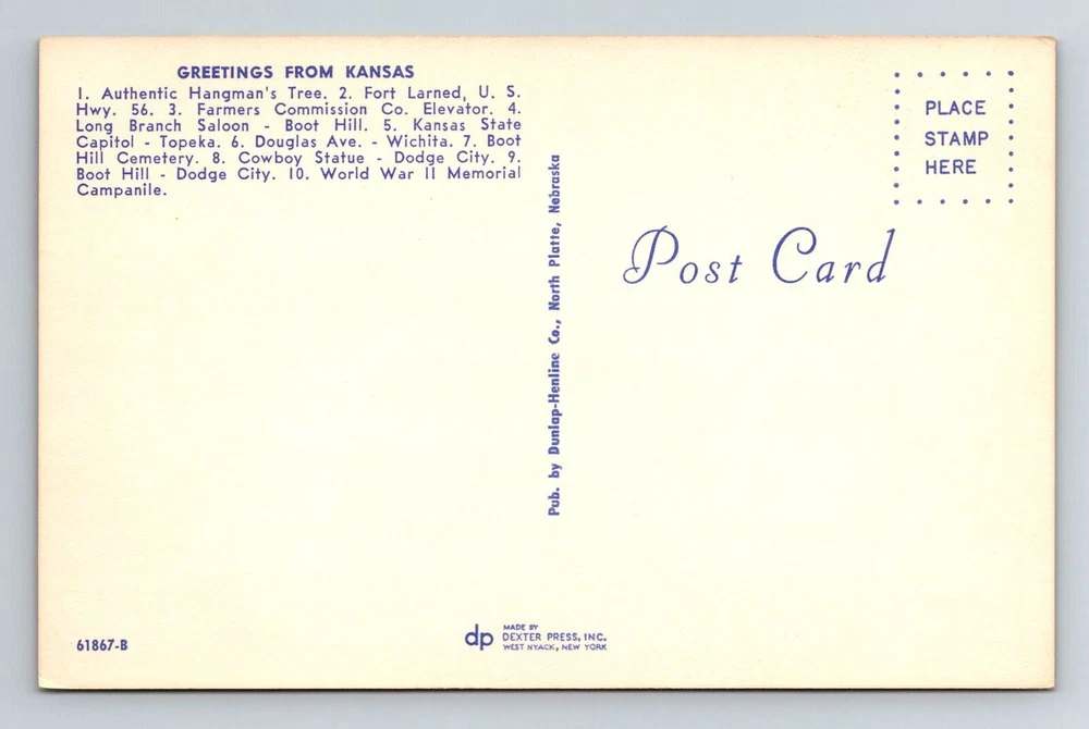 Postage Condition: See Image Country: USA Subject: Cities & Towns Era: Chrome Country/Region of Manufacture: Unknown Original/Licensed Reprint: Original Unit of Sale: Single Unit Region: Kansas Theme: Cities & Towns City: Kansas Type: Printed (Lithograph)