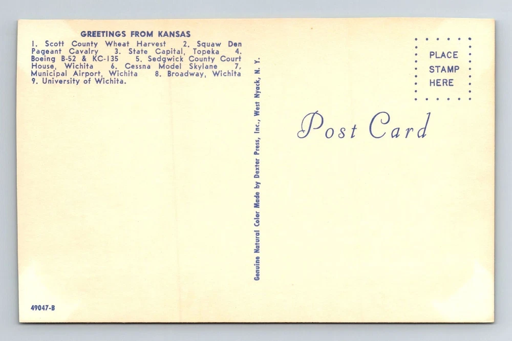 Theme: Cities & Towns Type: Printed (Lithograph) Country/Region of Manufacture: Unknown Region: Kansas Era: Chrome Subject: Cities & Towns Unit of Sale: Single Unit Country: USA City: Kansas Postage Condition: See Image Original/Licensed Reprint: Original