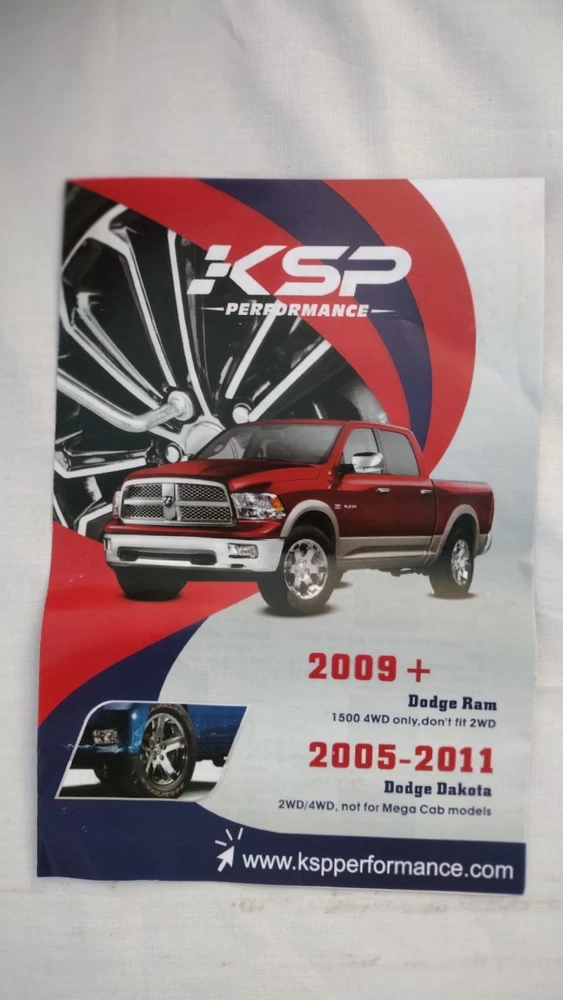 The KSP Leveling Lift Kit is a performance part designed specifically for 2009+ Dodge Ram 1500 4WD only. (Don't fit 2WD). Also fits 2005-2011 Dodge Dakota 2WD and 4WD vehicles. (Not for Mega Cab Models). This suspension lift kit includes 3" front lift height and 2" rear lift height. Comes with all necessary mounting hardware for easy installation. Manufactured by KSP, this product is guaranteed to enhance the performance and handling of your vehicle off road. 100