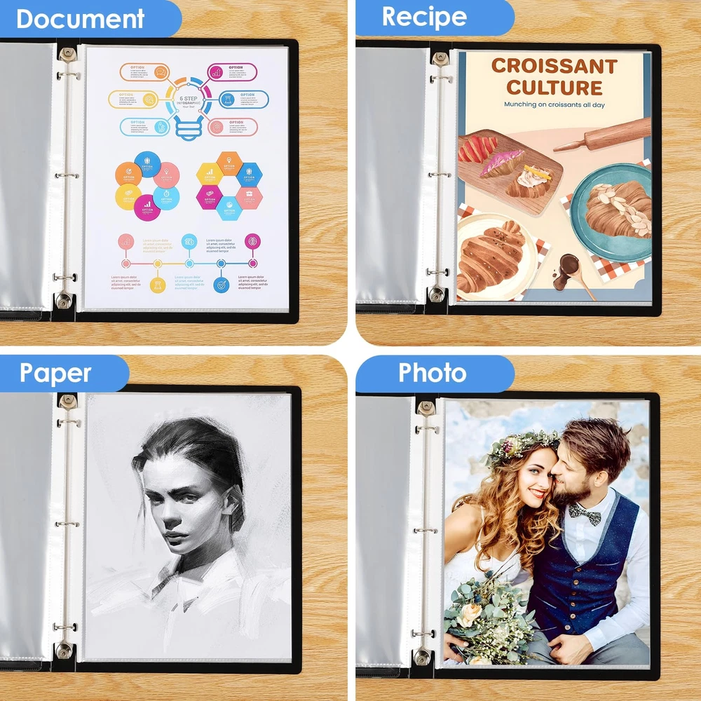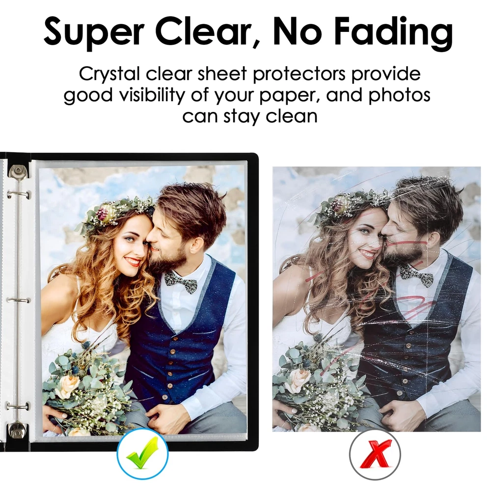 Ktrio Clear Sheet Protectors Name: Ktrio clear sheet protector Package Include: 500 pack clear sheet protector Measure: 8.5 x 11 inches, letter size Material: Acid-free and archival-safe polypropylene Special Feature: Easy-access top loading opening allows you to quickly add and remove documents without having to open up the rings of your binder. Clear plastic page protectors protect individual pages from dirt, debris, liquid and other contaminants, keeping documents safe and clean. Fit for any standard 3 ring binder without punching holes and damaging the inserted materials. Document Protection: Each 9.25 x 11.25 inch paper protector can hold 8.5 x 11 inch letter size paper, 500 pack. 2 sheets of paper can be placed in one pocket. Easy Access Top Loading: Pape protectors covers are for easy top loading, the sleeves are nonstick. Your document is easy to put in the take out, and it is writable for daily use, great for your office and school supplies. Crystal Clear Visibility: The 3 hole sheet protectors for binders are super clear for you to read the document words and images. And Also provide good visibility. The document and photo will not fade, you can store them for a long time. Durable and Sturdy: Made of premium quality polypropylene, PVC free, reinforced edges, fit for standard 3 ring binder. No tear or damage over time. We provide good customer service, any quality issues, please feel free to contact us. Versatile and Practical: The 8.5x11 inch paper protector heavy duty sleeve is ideal for keeping and organizing recipes, photos, important documents, certificates, and music sheets.
