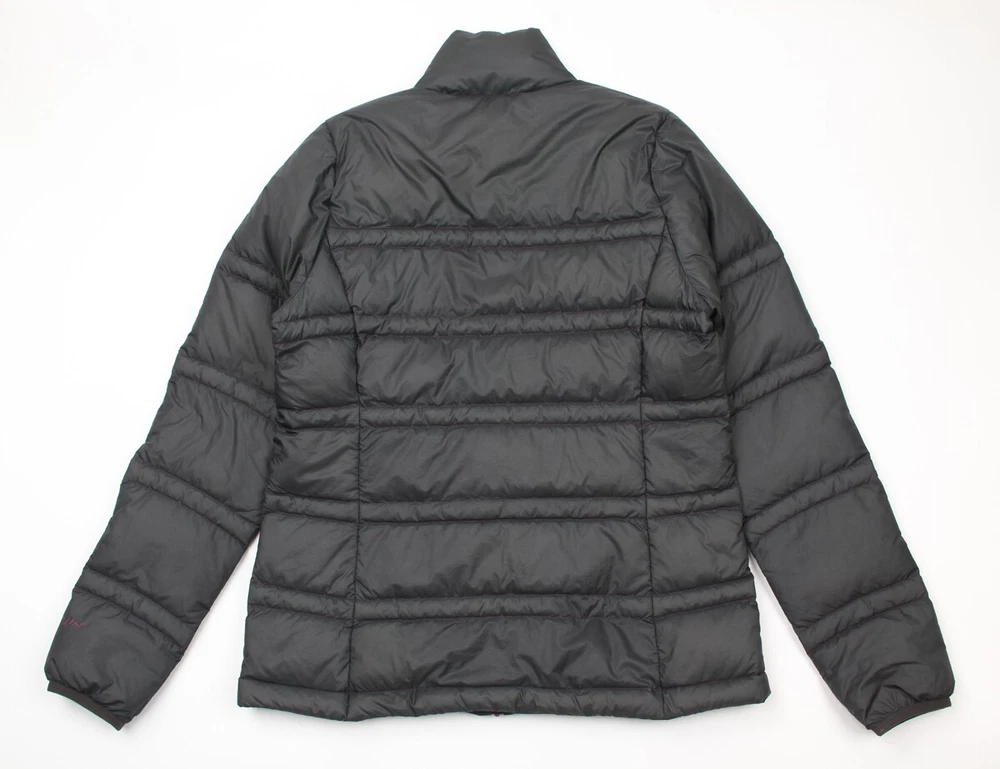 Clearance sale not eligible for return or exchange Fitted hood with stretch bound opening and back cinch adjustment Self-stows in right hand pocket Two-stage packability system Hem cinch with inside pocket adjusters Drop back hem Stretch bound wrist cuffs Zippered hand pockets Interior mesh drop pocket Fit: Mid-layer – sized to layer over base layer and mid-layer fleece