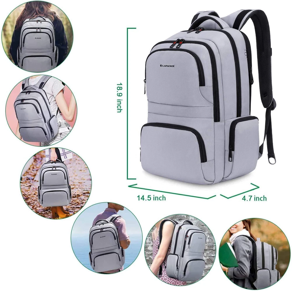 【Pockets and Pockets and Pockets within Pockets 】17 independent compartments for your organization!! Textbooks,laptop,clothes,folders,lunchbox,pens and other belongs can be stored in different pockets,you can find everything you need within 3 seconds. 【Comfy Padded Back & Straps】You must can not fed up with the pain due to the laptop backpack thin straps and back, Yeah? Don't worry,we replaced the general design with thick padded straps and back,breathable and soft just like a foam mattress,make it super comfortable to wear and offer you lighter loading feelings. 【Water Resistant】70D*200D Nylon Fabric which makes water not easily permeate school bookbag surface so that keeps your things dry in the rain.What's more, this kind of fabric dry quickly and easily.High performance in water resistant. 【Anti Theft Design】One anti theft separate laptop compartment hidden behind backpack straps, safe and easy take,fits laptop up to 15.6 inch.With a hidden anti-theft pocket on the back protect your valuable items from thieves. 【100% Service Guarantee】- If for any reason you're not satisfied, contact us directly, we offer 90-Day NO Hassle Return and 3-Year Worry-Free Guarantee. Lapacker focuses on quality, safety, comfort, and customer satisfaction.