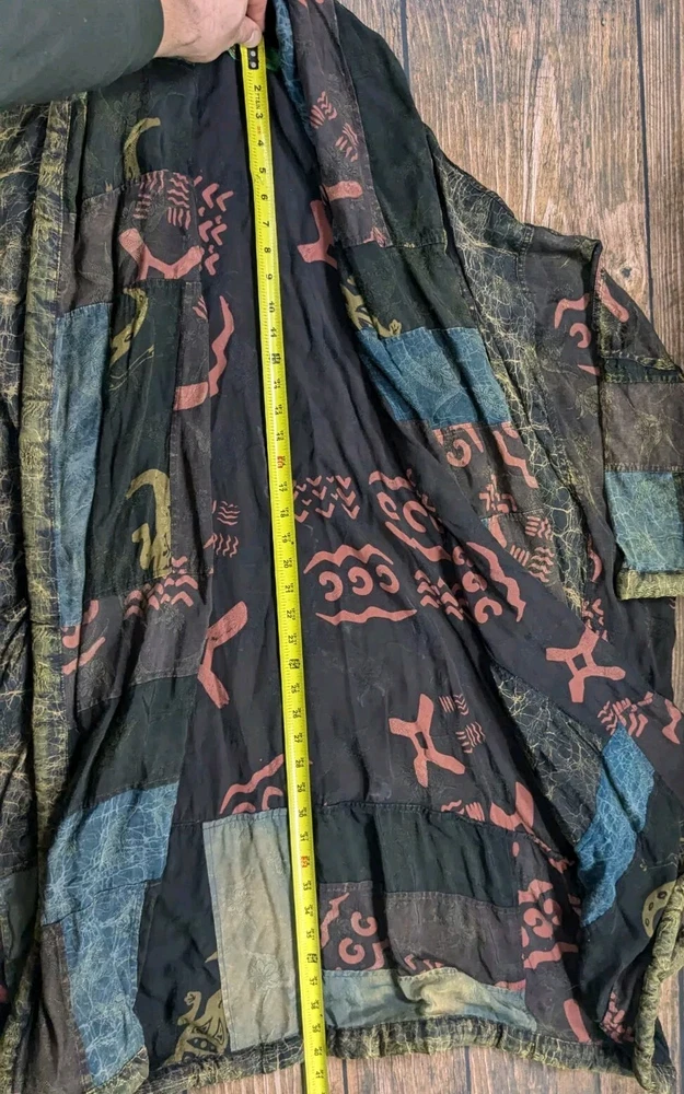 Season: Fall, Spring, Winter Theme: Bohemian, Hippie, Vintage, Polynesian Brand: Kusnadi Sleeve Length: 3/4 Sleeve Outer Shell Material: Rayon Type: Kimono Jacket/Coat Length: Long Size Type: Regular Occasion: Party/Cocktail Color: Multicolor Vintage: Yes Features: Pockets Fit: Relaxed Style: Kimono Fabric Type: Rayon Department: Women Size: One Size Garment Care: Hand Wash Only Country/Region of Manufacture: Indonesia