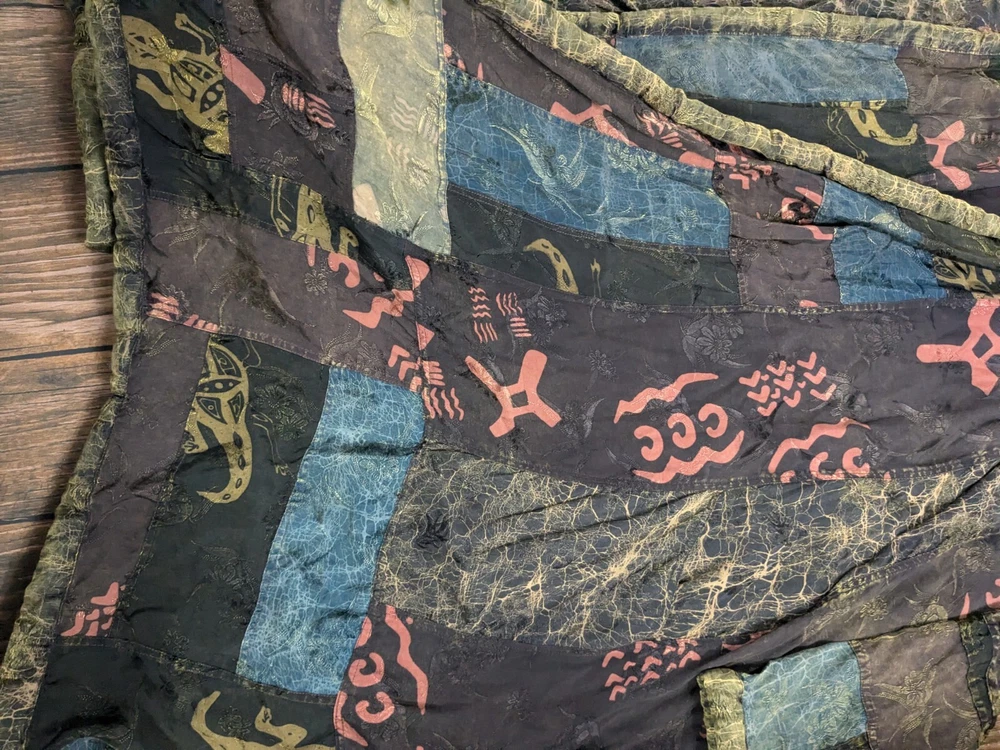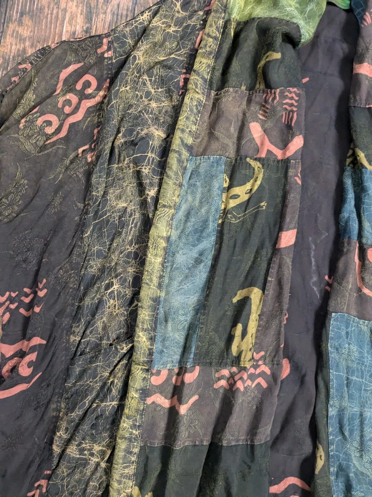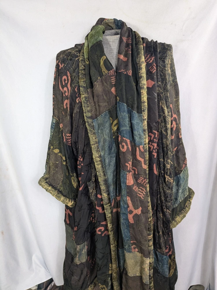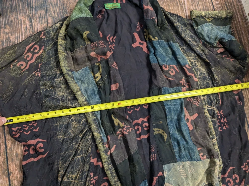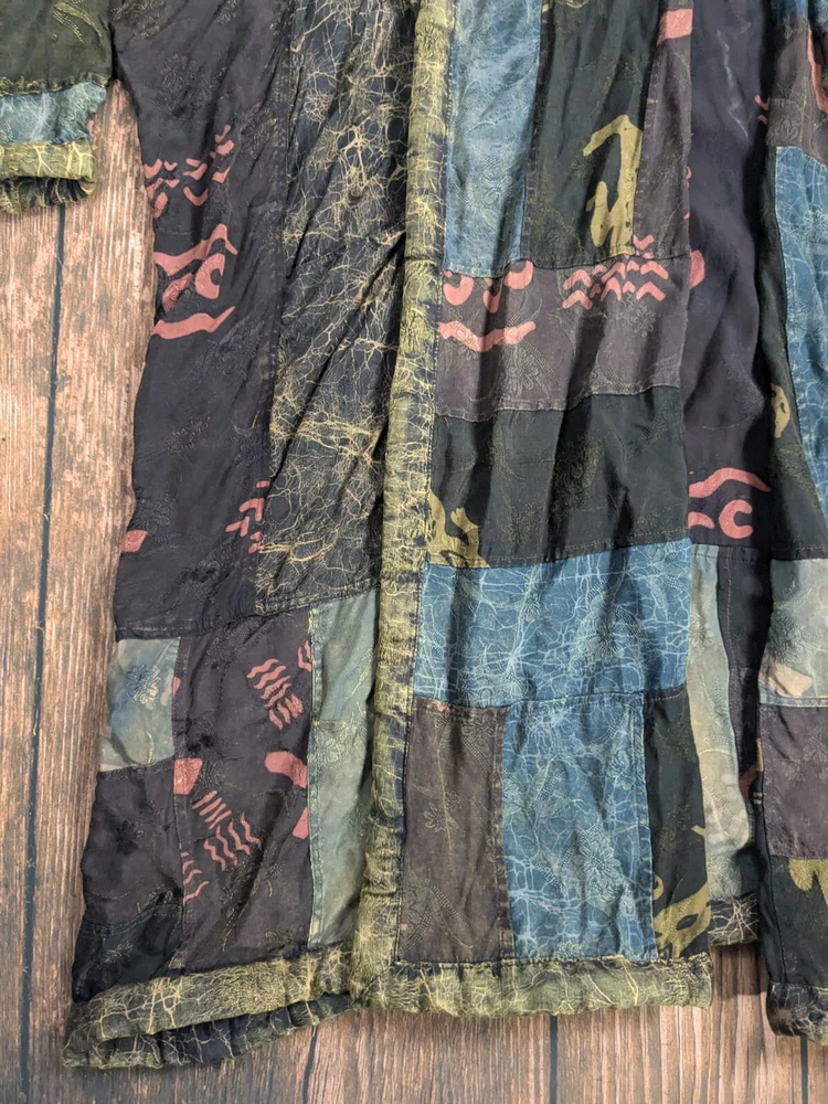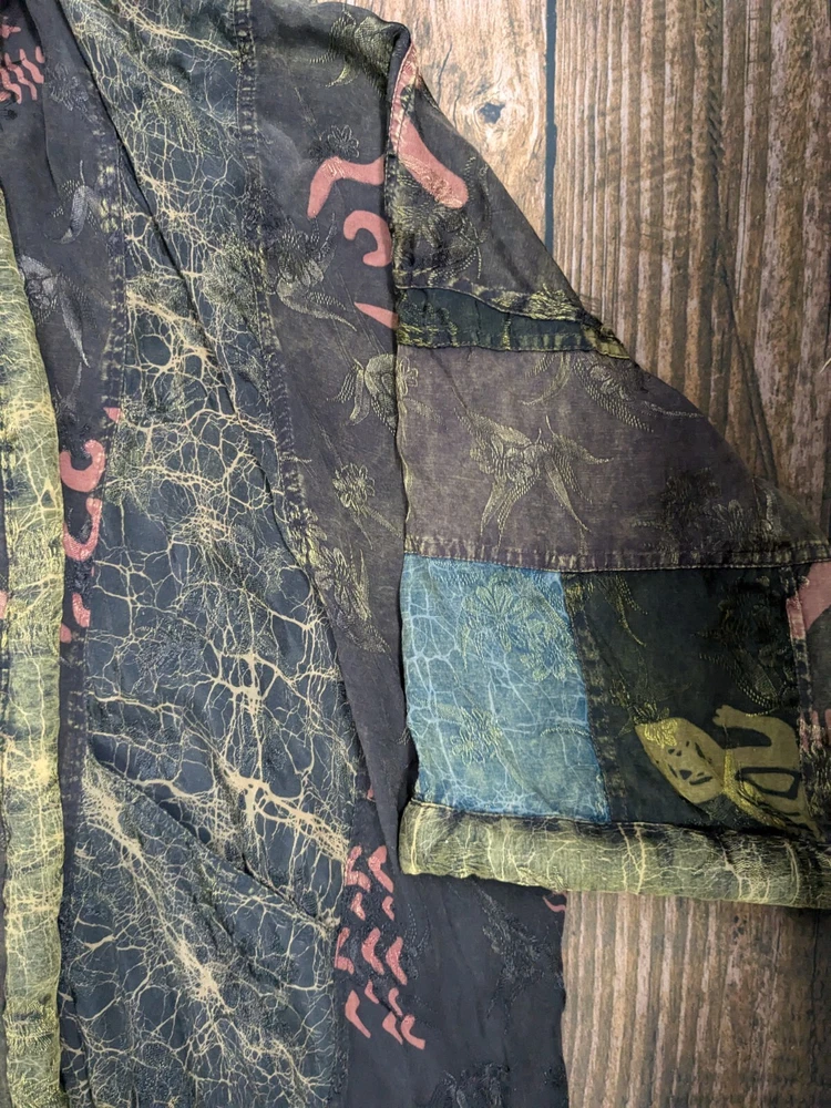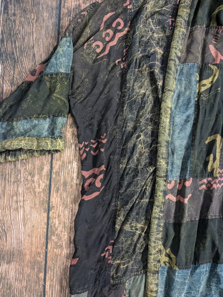 KUSNADI Kimono Patchwork Art Floral Duster Open Cardigan Jacket Vintage One Size
