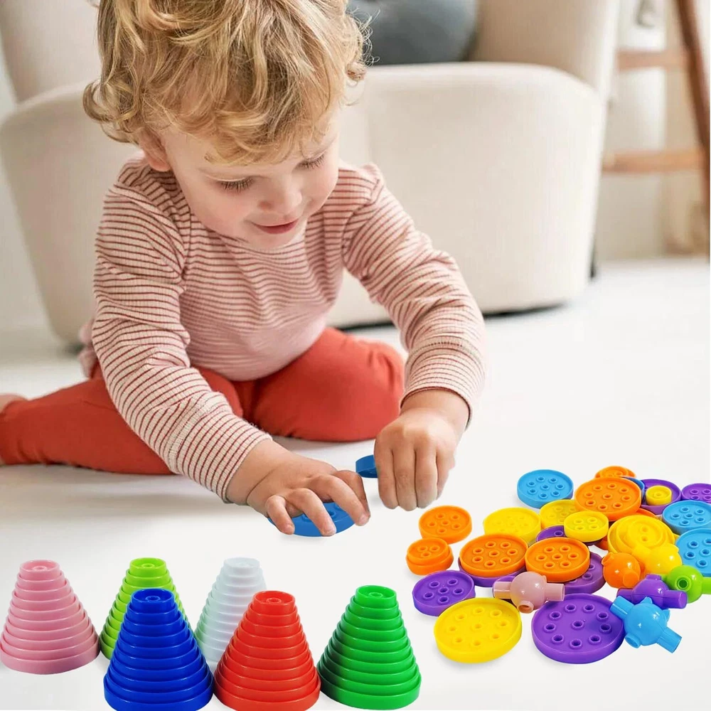 KUTOI Button Threading Toy - 120 Piece Fine Motor Skills Toys - Buttons for C...