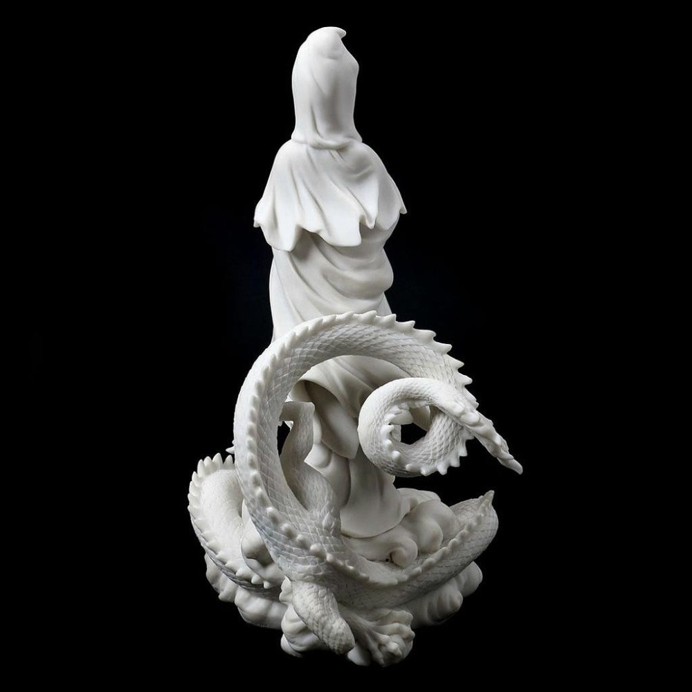 Kwan Yin on Dragon Statue Kwan Yin on Dragon Statue Click image to enlarge Description This beautiful statue is made from resin with crushed marble powder. It has exceptional detail and craftsmanship , and it is substantial with good weight. Detail Condition: Brand New Design: Kwan Yin on Dragon Material: Resin with Crushed Marble Powder Color: White Size: Approx. 12.5" x 7" x 10.5" Weight: Approx. 4 lbs Kwan Yin Pu Sa is the Buddhist Bodhisattva of compassion and mercy. Her name translates to 'she who hears the cries of the world'. She is beloved and worshiped in Buddhist communities worldwide for her unconditional love of humanity. Here she is seen riding upon a dragon as the 'Bodhisattva of the Southern Sea' and patroness of fisherman. SEE OUR ENTIRE SELECTION OF BEAUTIFUL KWAN YIN STATUES IN THE KWAN YIN SECTION OF OUR STORE. Shipping Shipping charges calculated to location. International Buyers International shipping charges are calculated to location in the 'Shipping and Payments' tab near the top of this page. Import duties, taxes, and charges are not included in the item price or shipping cost. These charges are the buyer's responsibility. Please check with your country's customs office to determine what these additional costs will be prior to bidding or buying. 'International First Class Mail' can take up to 6 business weeks for delivery depending on destination country, destination customs, and local or origin peak holiday shipping season. Faster 'International Priority Mail' shipping options are also available at checkout for most items. About Us The Tiny Dragon is a U.S. owned and operated 'e-retail' company. Our mission is to provide unique and affordable items of quality, promptly delivered to your complete satisfaction. Our items are shipped directly to you from our headquarters in beautiful Portland, Oregon USA. View our entire inventory at: At 'The Tiny Dragon' you are a valued customer and it is always our pleasure to serve you.