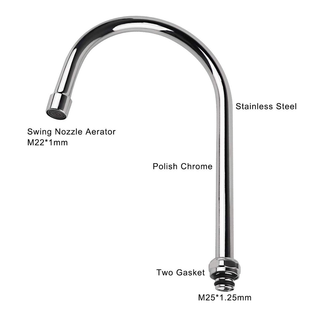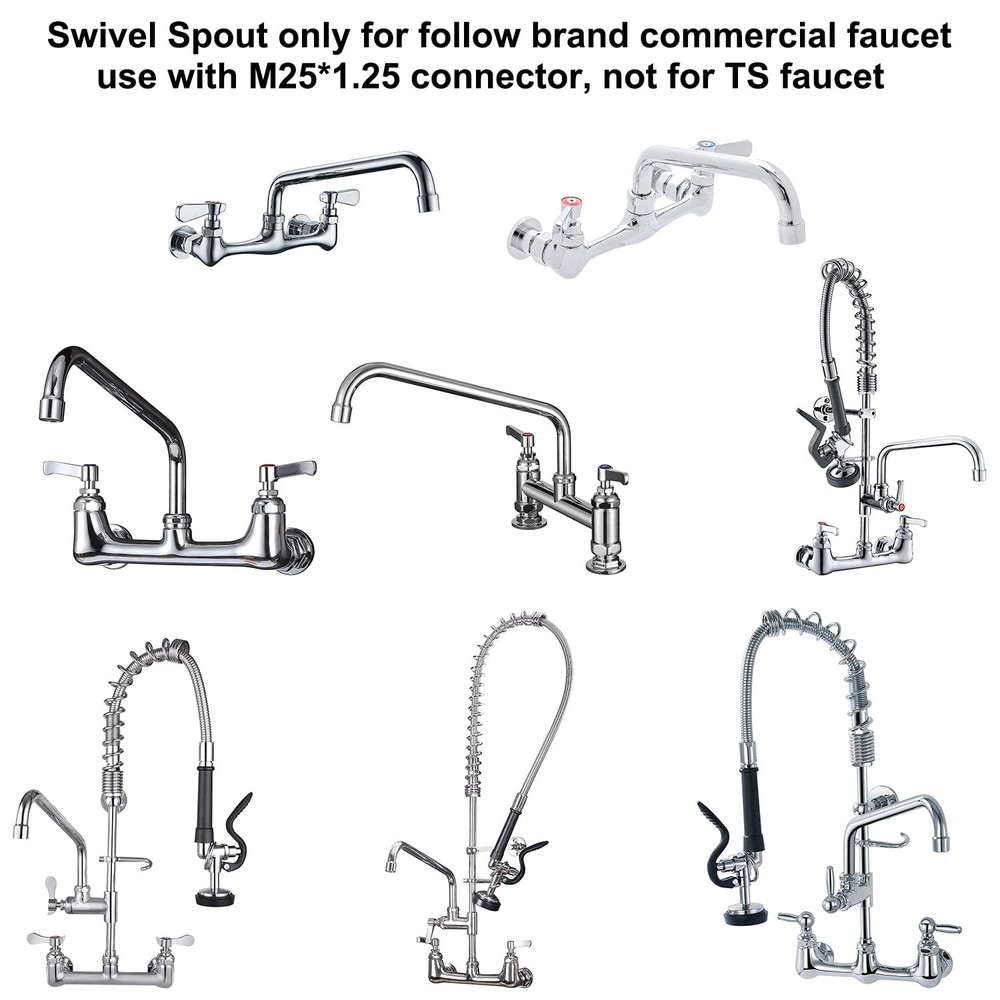 1. This swivel gooseneck spout is a game-changer for any commercial kitchen! The 360° rotation makes it super easy to switch between sinks, and the 2.2 GPM nozzle delivers a strong, steady flow. The chrome finish looks sleek and professional, and installation was a breeze with the M25*1.25 connector. Perfect replacement for worn-out faucets—durable, functional, and affordable. Highly recommend for busy kitchens!