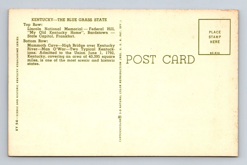 Theme: Cities & Towns Unit of Sale: Single Unit Region: Kentucky Postage Condition: See Image Original/Licensed Reprint: Original Country: USA Country/Region of Manufacture: Unknown Type: Printed (Lithograph) Era: Vintage City: Kentucky Subject: Cities & Towns