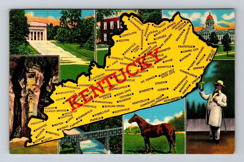 KY-Kentucky, Landmarks On Map, Scenic View, Vintage Postcard