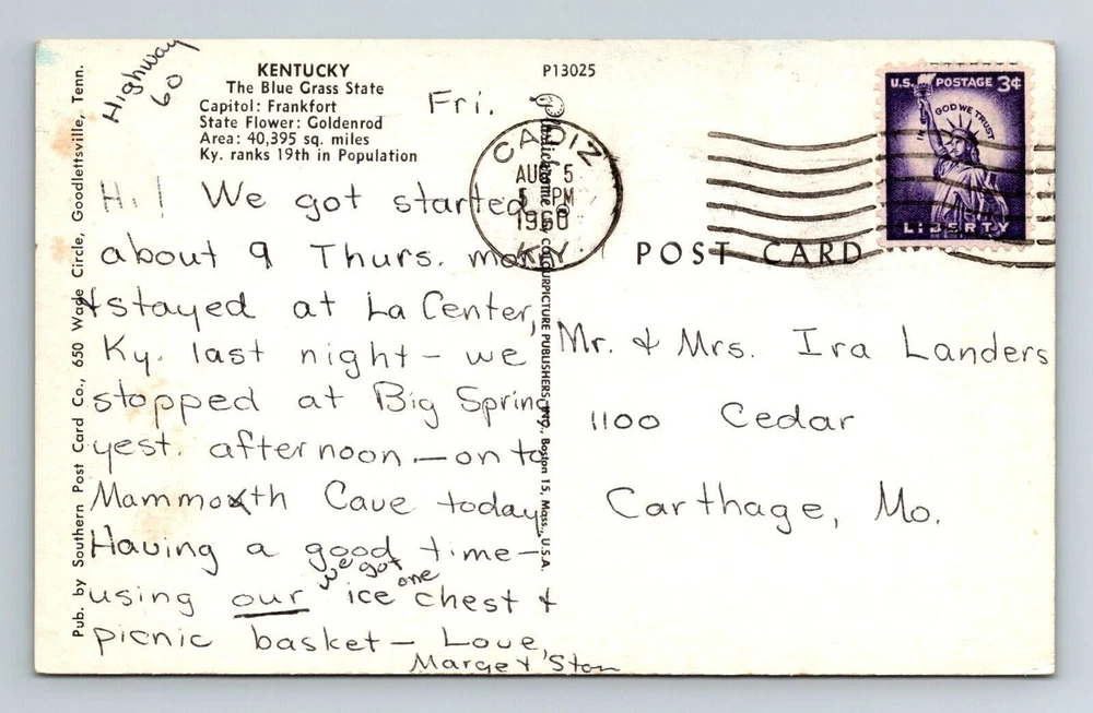 Theme: Cities & Towns Unit of Sale: Single Unit Era: Chrome Country/Region of Manufacture: United States Postage Condition: Posted Continent: North America Country: USA Type: Printed (Lithograph) City: Kentucky Region: Kentucky Subject: Cities & Towns Original/Licensed Reprint: Original