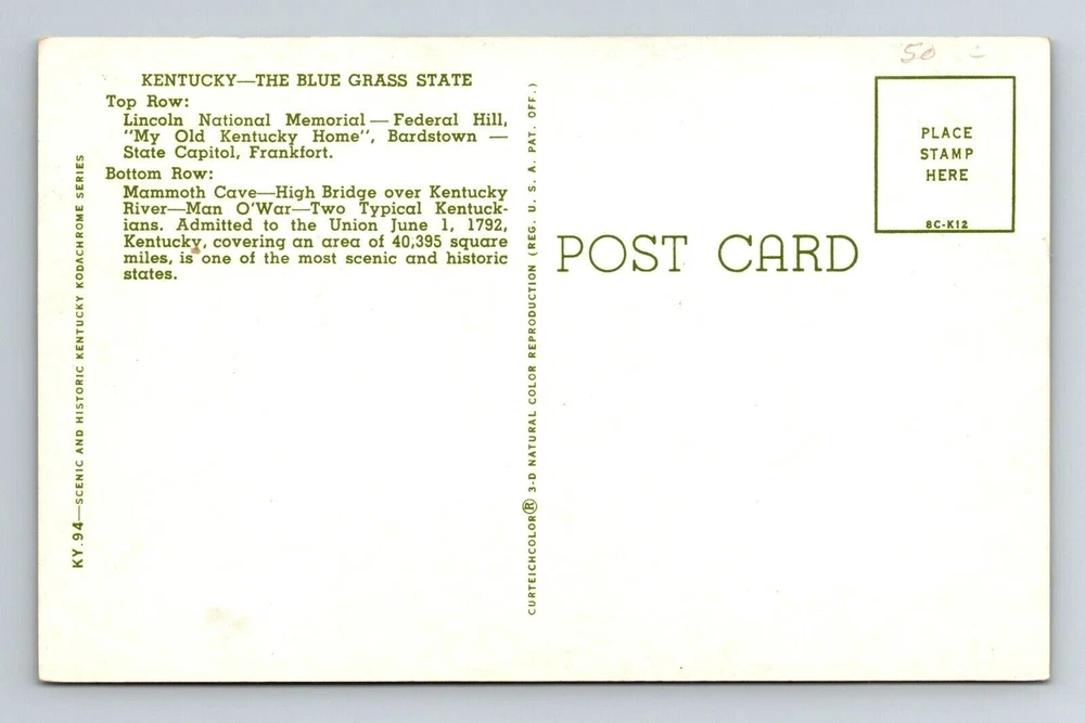 Era: Chrome Country/Region of Manufacture: United States Country: USA Theme: Cities & Towns City: Kentucky Continent: North America Type: Printed (Lithograph) Region: Kentucky Unit of Sale: Single Unit Postage Condition: Unposted Subject: Cities & Towns Original/Licensed Reprint: Original