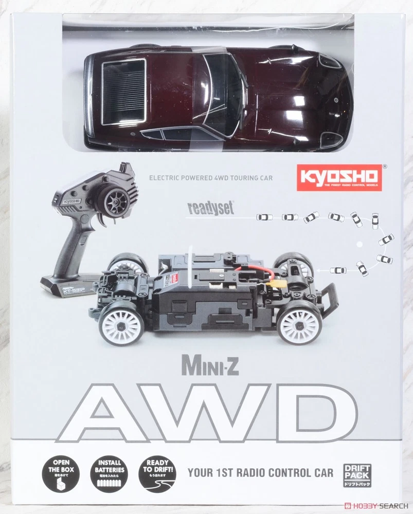 KYOSHO MINI-Z AWD Nissan Fairlady 240ZG Maroon Ready Set From Japan NEW Description Condition: New MINI-Z AWD Nissan Fairlady 240ZG Maroon Mini-Z AWD Nissan Fairlady 240ZG Maroon Four-wheel drive chassis + drift tires for drifting in a small space! The MINI-Z AWD series combines the Syncro KT-531P transmitter. We want more drivers to experience the performance of MINI-Z AWD. The “MINI-Z AWD Ready Set” was created to fulfill this desire. The MA-020 series chassis with the “VCS (Variable Camber Suspension)” in the front, which optimizes the camber change with the stroke, is combined with a revised steering control program. Equipped with a dedicated space and gyro adjustment volume to accommodate a dedicated gyro (sold separately: MZW446). The gyro's effectiveness can be adjusted on the chassis itself, and changes in attitude are reflected in the steering compensation, providing beginners with a safe ride and experts with the support they need to demonstrate their abilities. The full-bearing design with as many as 14 bearings is also available. The chassis is highly efficient, durable, and affordable. The ready set includes the scale body that only MINI-Z can provide and the Syncro KT-531P 2.4GHz radio system, which requires no band management. Drift tires are fitted as standard equipment, so thrilling drifting can be enjoyed right out of the box with just a set of batteries. Of course, the AWD chassis is compatible with many of MINI-Z's ASC bodies (additional parts may be required depending on the car model), allowing you to experience the kind of driving only possible with an AWD chassis. Payment Please pay within 5 days after the auction closed. Shipping About other area, please ask me. When you purchase two or more my items, I can send them together and discount shipping cost. Returns Returns are accepted ONLY if the item was not the item described. International Buyers - Please Note: * Import duties, taxes and charges are not included in the item price or shipping charges. These charges are the buyer's responsibility. * Please check with your country's customs office to determine what these additional costs will be prior to bidding/buying. * These charges are normally collected by the delivering freight (shipping) company or when you pick the item up - do not confuse them for additional shipping charges. * We do not mark merchandise values below value or mark items as "gifts" - US and International government regulations prohibit such behavior.