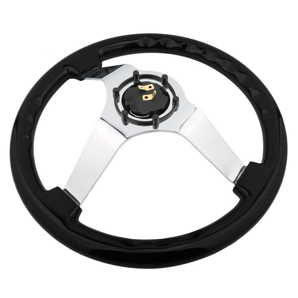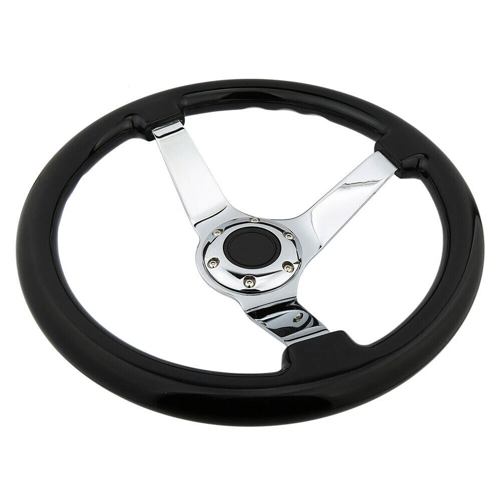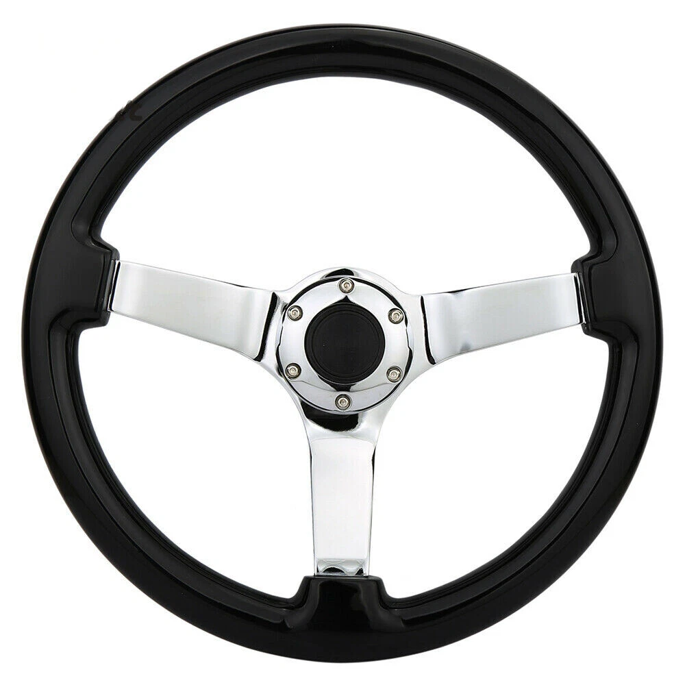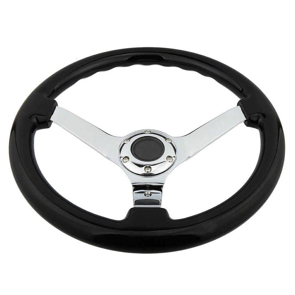 KYOSTAR 350mm 14'' Classic Black Grip 6-Hole Chrome Spoke Steering Wheel Wooden KYOSTAR 350mm 14'' Classic Black Grip 6-Hole Chrome Spoke Steering Wheel Wooden Description - The frame is made of high quality aluminum and high quality wood - 350mm Diameter 45mm Deep Dish Vintage Spec - Universally fits with any Standard 6-Bolt Racing Hub Adapters (e.g. Nardi, Personal, Momo, Sparco,…etc.) - Horn Button is Retained - Professional Installation is Highly Recommended - Installation Instruction is NOT Included Package : 1 X Wooden Steering Wheel All Necessary Hardware Application : Universally Fits 6-Hole Adapters Payment Shipping Handling Sales Taxes Return Policy Contact us Payment We accept PayPal only. Please be sure your shipping address is correct. We will only follow your address listed at the PayPal payment for the shipment. Unpaid item (UPI) complaint will be filed against non-paying buyers after 4 days. Shipping Handling Items will ship out within 1 business days after payment is received. All items are shipped by UPS/USPS/DHL with a tracking number. Tracking number will be added to ebay after the shipment,customers can track the item status on https://www.usps.com T he Approx delivery time is referred as below, Country Approx Delivery Time United States 1-6 working days Canada 6-11 working days Other Country 7-19 working days Above time are for reference ONLY. Shipping might be delay by holidays, events and other uncertainties such as custom inspect. We DO NOT guarantee the arrival time. Sales Taxes Import duties,taxes and charges are not included in the item price Please check with your country customs office for these additional charges (Usually we'll lower the value and mark the item as gift) Return Policy Please contact us before leaving neutral or negative feedback and we will try our best to resolve any issue. Feedback will be left to every buyer who completed the transaction and left positive feedback to us. We accept 30 days return only if item is original. Refund will be issued once we receive your returned items. Buyer is responsible for all return shipping charges. Contact us Please send all correspondence through the eBay messaging system. All eBay message will be replied within 24 hours of receipt or sooner. Our business time is Monday - Friday 9:30 am to 6:30 pm HKT except all Holidays.