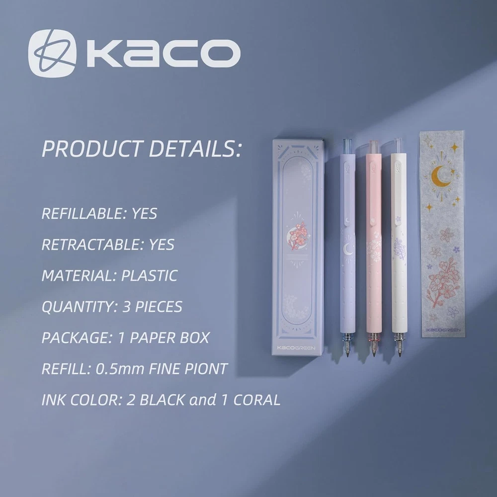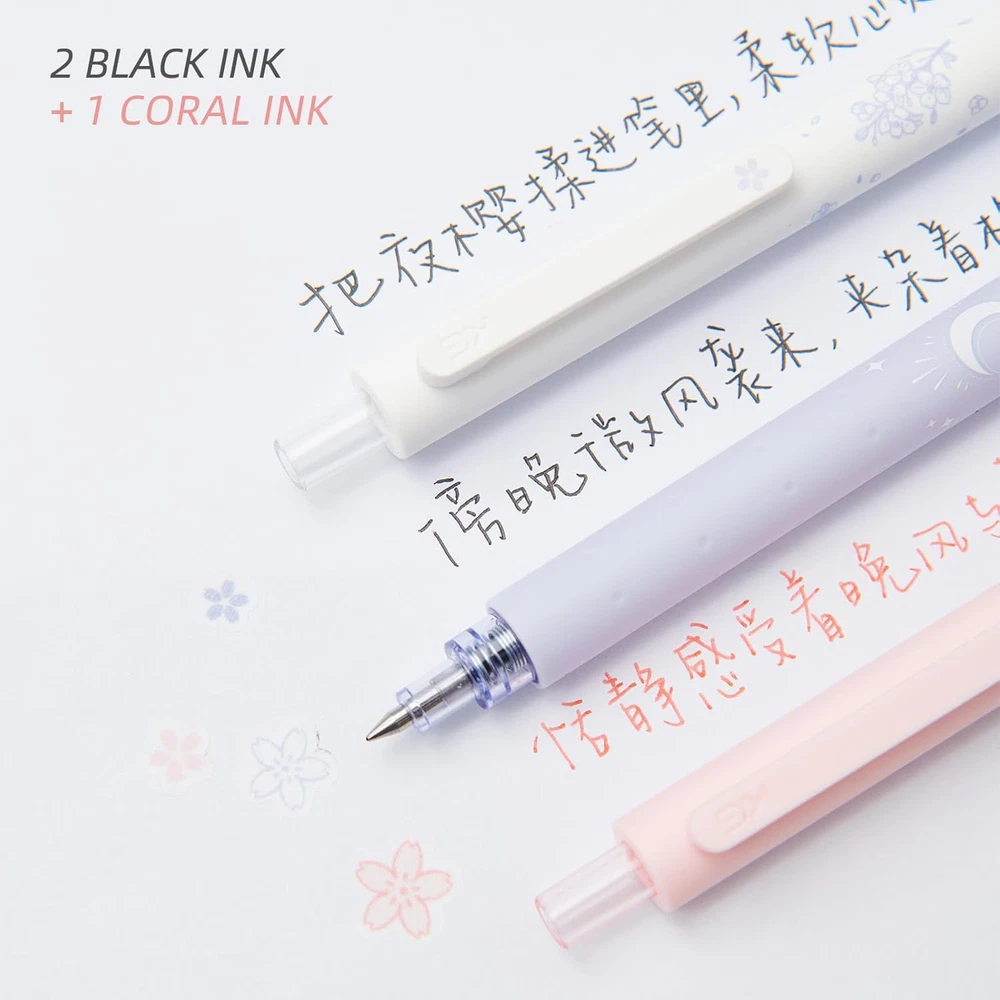 Kaco 3-Piece Gel Pen Set 0.5mm Fine Point Quick Drying Black Coral Ink