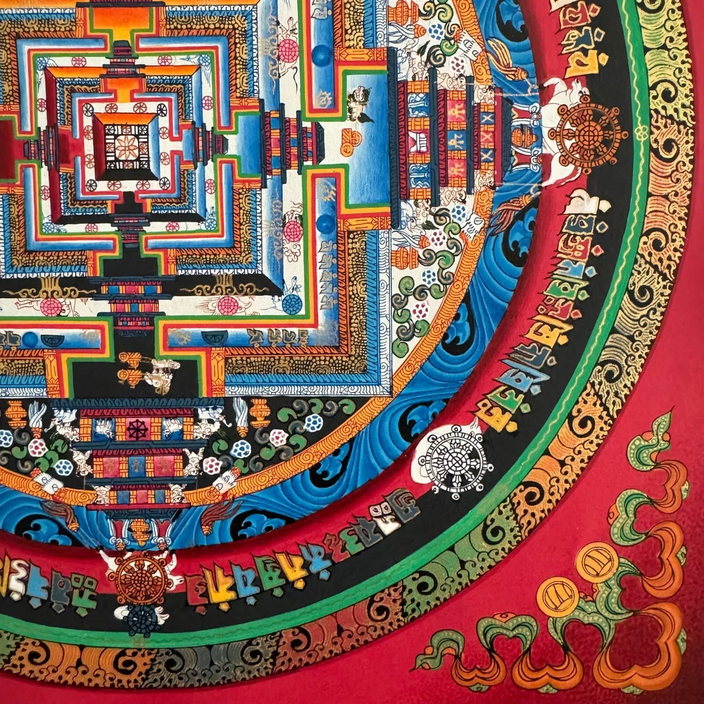 Namaste and Welcome to my Gallery!!! All of the paintings and arts in my gallery are originally handmade and hand-painted by my family members and other local artists who have been practicing their craft for over two decades. My father is Master Artists Nepal with an experience of more than four decades; you can see some of his work in this Gallery. Also you can see some of the beautiful and soulful artwork of talented local artists from Himalayas. ~~ Kalachakra Mandala Thangka~~ Kalachakra Mandala is a Sanskrit word for “wheel of time”. The mandala of kalachakra is aerial view of the kalachakra temple, situated in Lhasa and contains 722 Deities, and at its heart on a Lotus flower, a single Buddha: Kalachakra. It is a 5 level structure, each level is represented by a square, and each square is set within the others. In mandala there are six circles of elements: wisdom, space, wind, fire, water and earth. Then we get to different entrance of the body, speech and mind. The Dalai Lama and the Kalachakra Although thought to have once been a carefully guarded secret of the Shambhala Kingdom, the Kalachakra Tantra is now widely known. The Dalai Lama himself has given thirty-three separate initiations into this practice all over the world, including in Tibet, India, Switzerland, Canada, and the United States. In an essay on his website, His Holiness writes, “the Kalachakra initiations empower the disciple to practice the yoga of the Kalachakra tantra, and, ultimately, to achieve the state of Shri Kalachakra.” As with other mandala practices, the goal here is for the initiate to “enter” into the mandala and identify with the deity represented therein. The Kalachakra Mandala Through meditation on the Kalachakra mandala, monks invoke the qualities of the deity, striving in a ritualized way enter the mandala and become the deity themselves. This practice is not usually public, and mostly occurs behind temple walls. The floors of the palace depicted in the Kalachakra Mandala, from the ground up, represent: 1) Enlightened body 2) Enlightened speech 3) Enlightened mind 4) Enlightened wisdom 5) Enlightened great bliss Arrayed around the palace are four elemental rings and two outer rings. From the inside out they are: 1) Earth 2) Water 3) Fire 4) Wind 5) Space 6) Wisdom Taken together, all of these elements compose a microcosm of the universe, ruled by time personified. Size = 76cm x 63cm Material Used: • Cotton Canvas • Natural Pigments and colors • Gold leaf • Silk Fabric ~Excellent for meditation or home/office decor, ~Tibetan Yoga Wall Art ~Genuine 100% hand-painted from Himalayas Please feel free to contact me if you have any question regarding the painting.