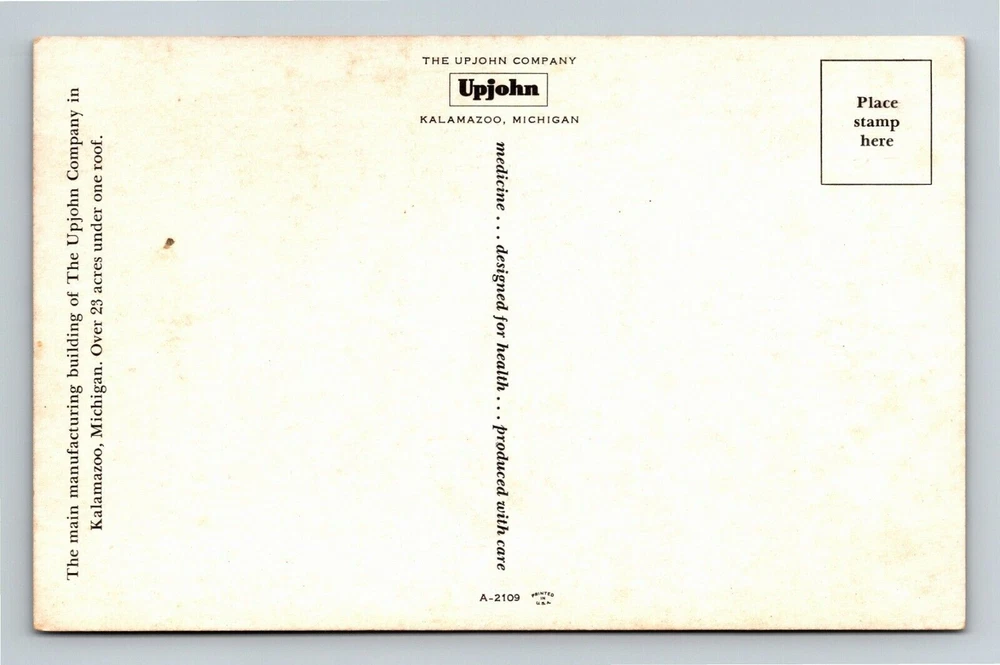 Kalamazoo MI, Upjohn Manufacturing Company Building, Michigan Vintage Postcard