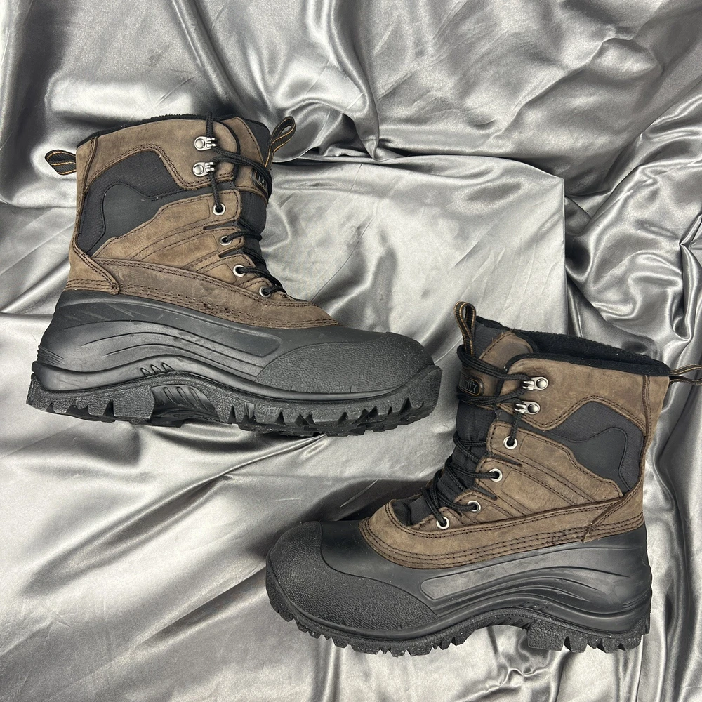 Kamik Men's Snow Boots Size 9 Pedigree Safety Toe Work Removable Liners Winter Brown Black Gorpcore Condition shown in photos Please make sure to view and zoom in on all photos to determine the condition of the boots. 🧼 Boots have been cleaned and sanitized to meet the platform standards Questions? Want more pics? Send a DM 🙂 📬 Ships same day or within 24/hrs! 🥳